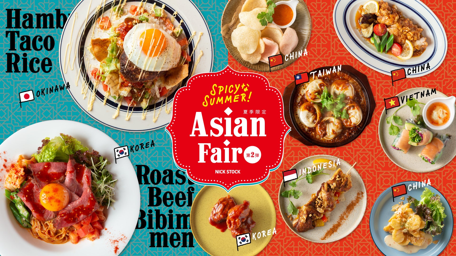第1弾で好評だったメニューに加え、ニックストックが得意とする“肉が主役”のスパイシーな夏のアジアングルメが新登場します。アジア各国のグルメからインスパイアされたニックストックオリジナルの全9品の期間限定メニューをお楽しみください。