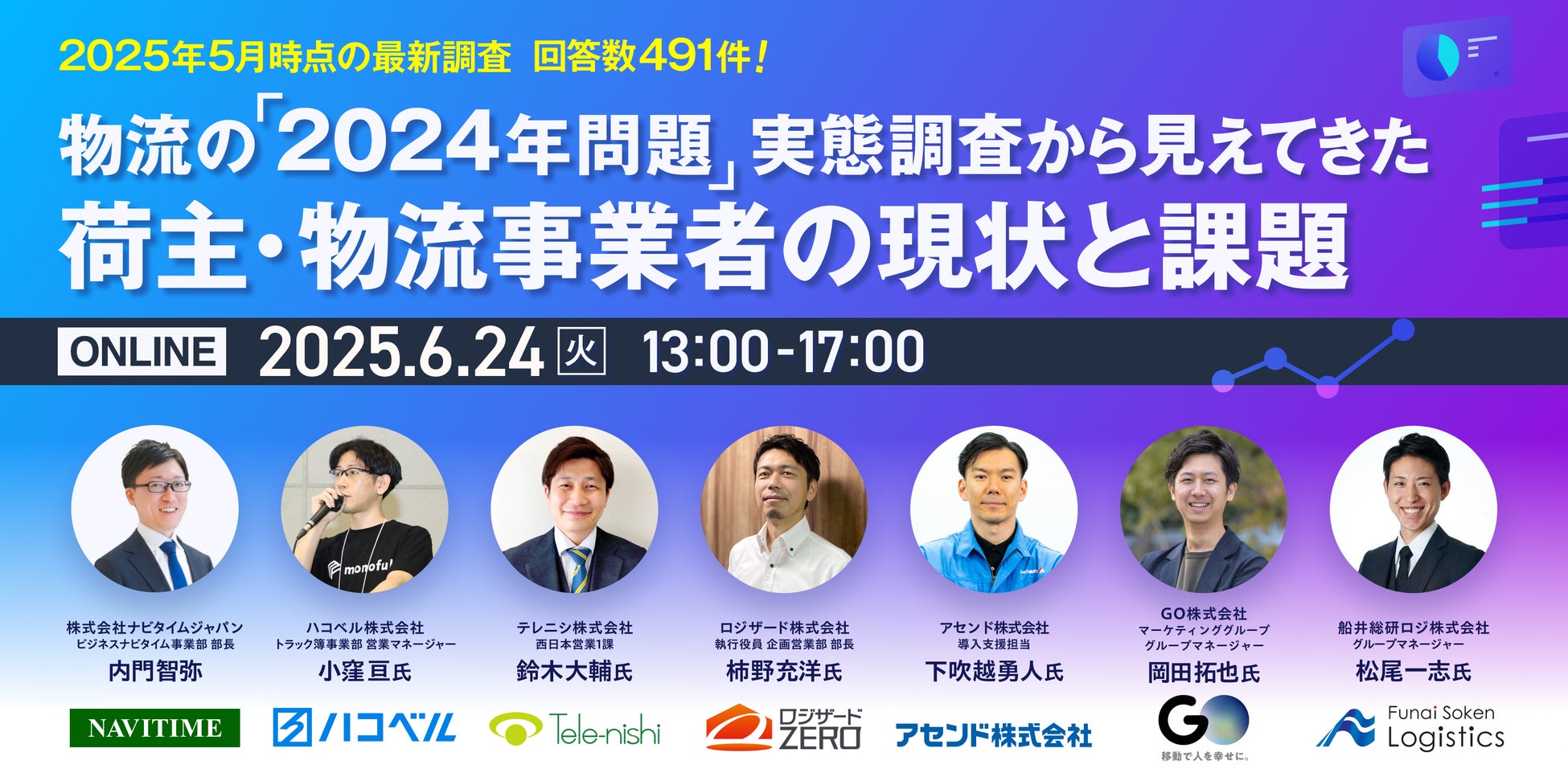 クラウド型在庫管理システムのリーディングカンパニーであるロジザード株式会社(東京都中央区、代表取締役社長:金澤 茂則、以下:ロジザード)は、2025年6月24日(火)13時より、ナビタイムジャパン株式会社(東京都港区、代表者:大西 啓介、以下:ナビタイムジャパン)主催のウェビナー『物流の「2024年問題」実態調査から見えてきた荷主・物流事業者の現状と課題』へ登壇いたしますのでお知らせいたします。