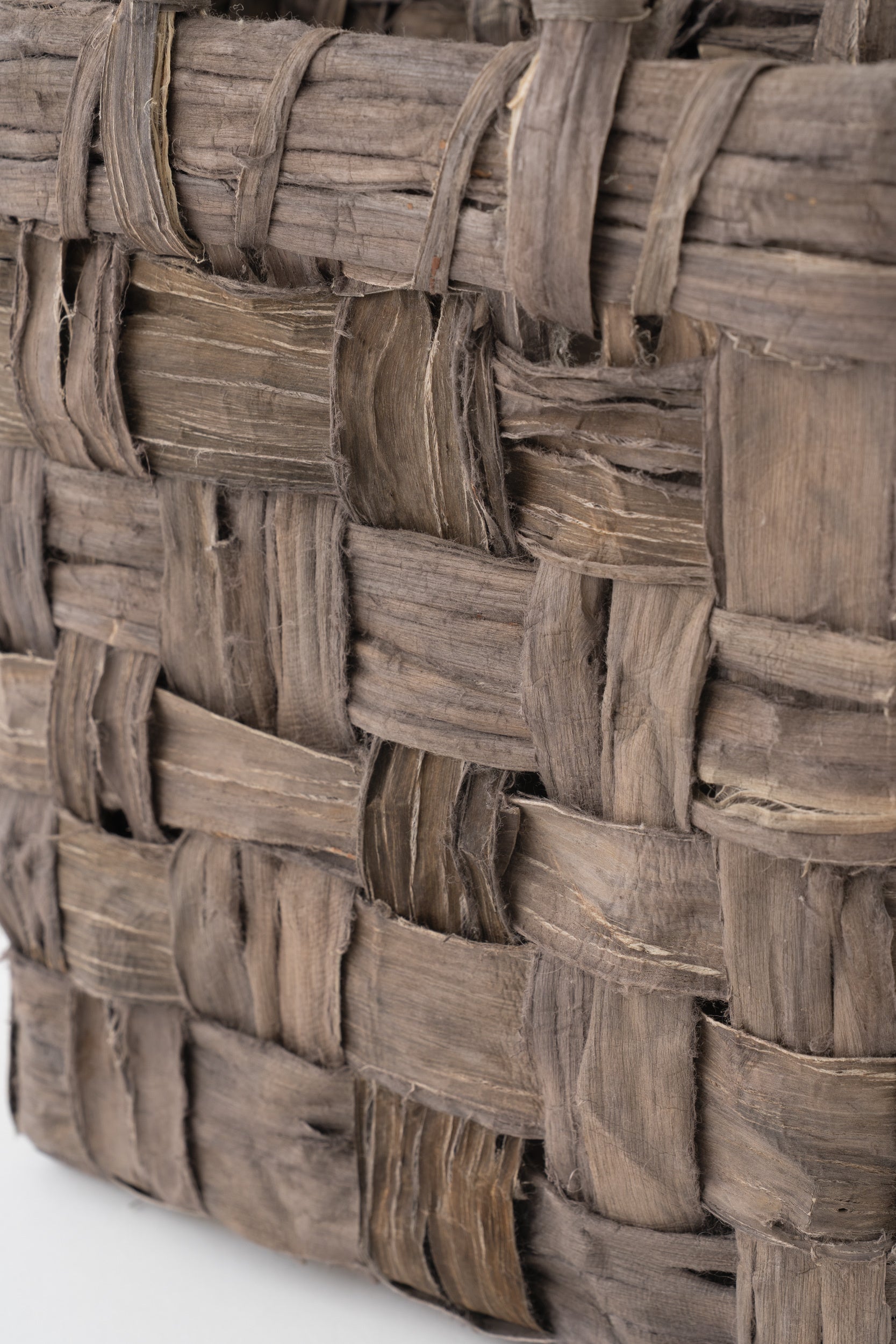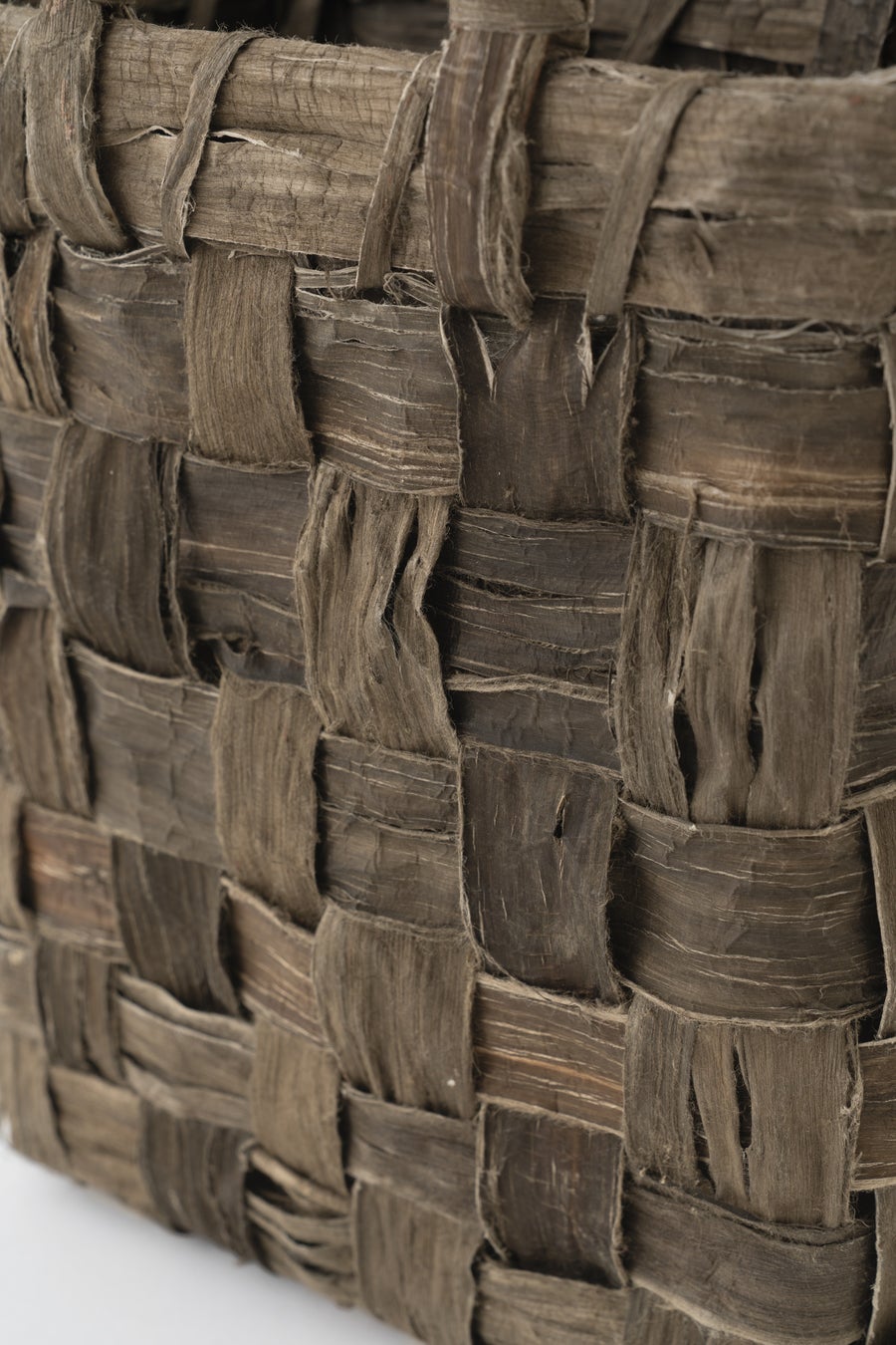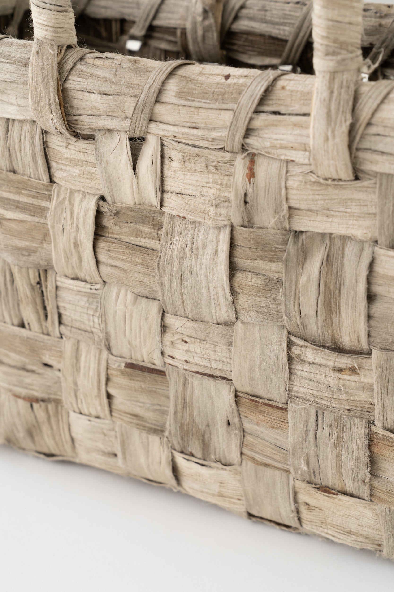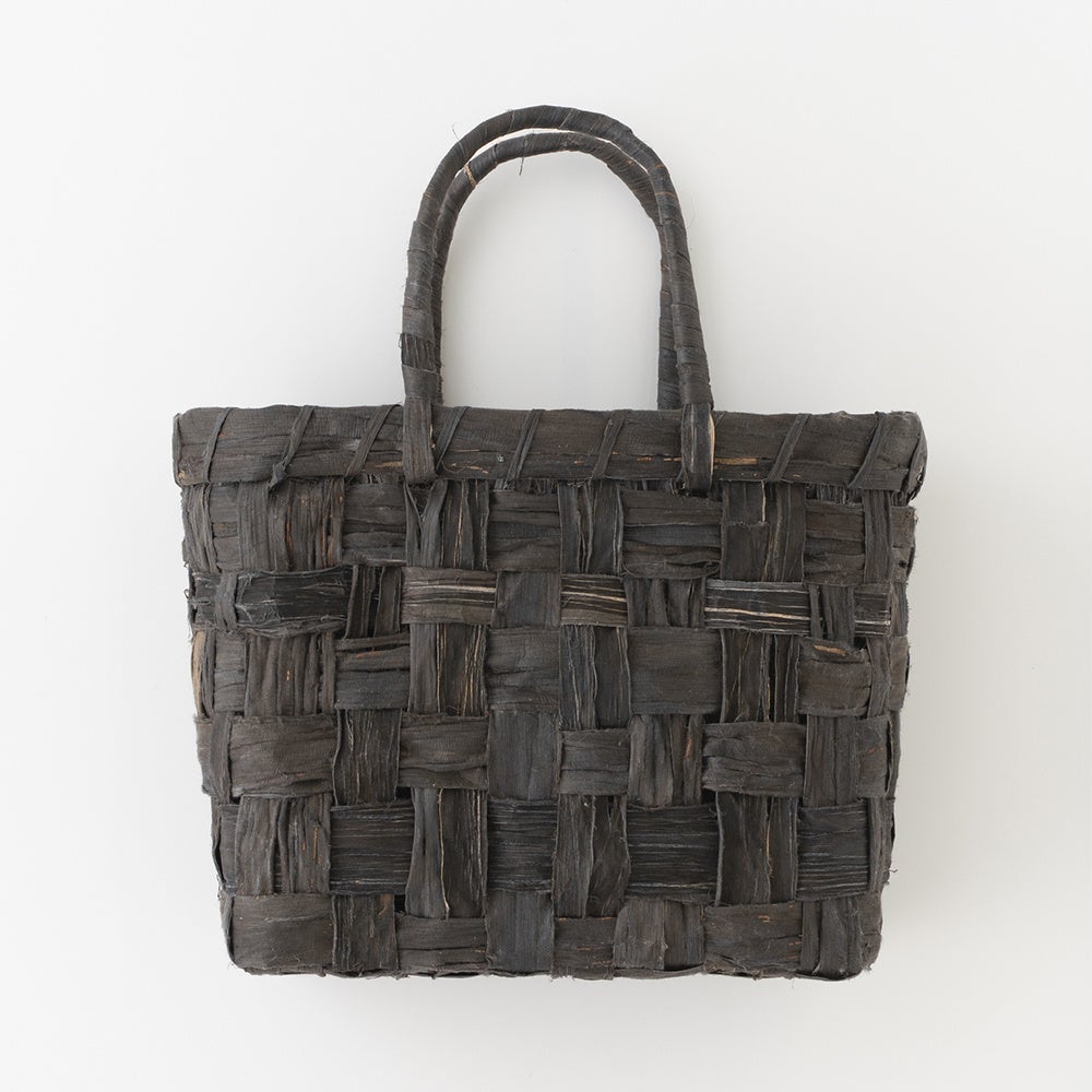また、すべてのバッグにはシリアル番号が刻印された真鍮のタグが付属し、ひとつひとつ異なる表情を持つプロダクトであることを示すディテールのひとつです。胡桃や山葡萄の樹皮で作られる籠バッグとは異なる、軽やかでしなやかな手触りも特徴で、軽量でありながら耐久性にも優れ、日常使いにも適しています。