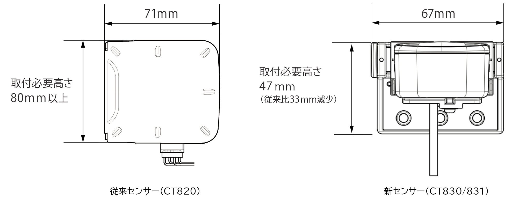 センサーの筐体を小型化し、取り付けに必要な高さを従来比で約33mm削減。