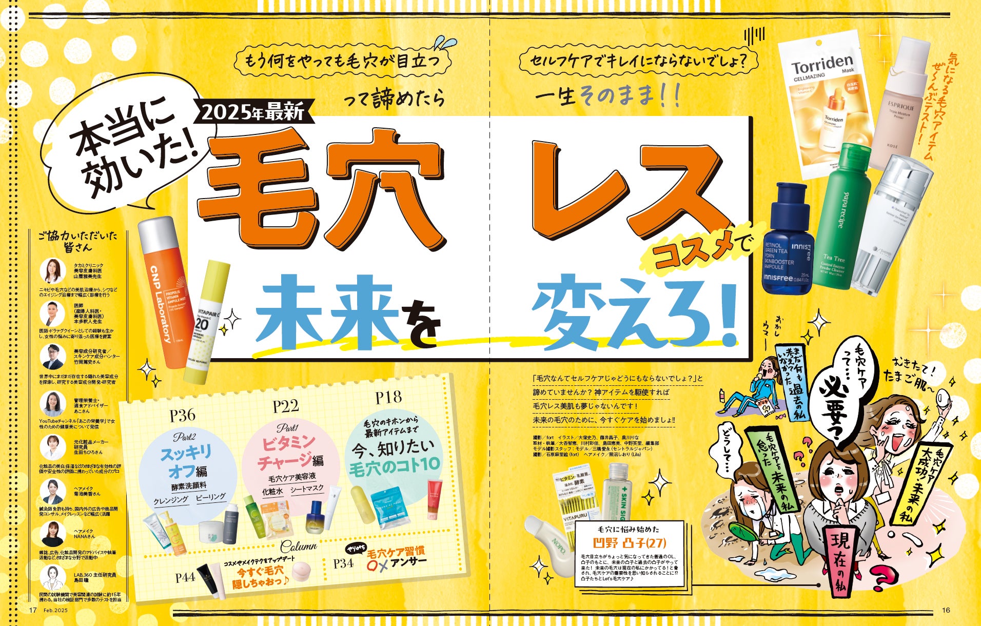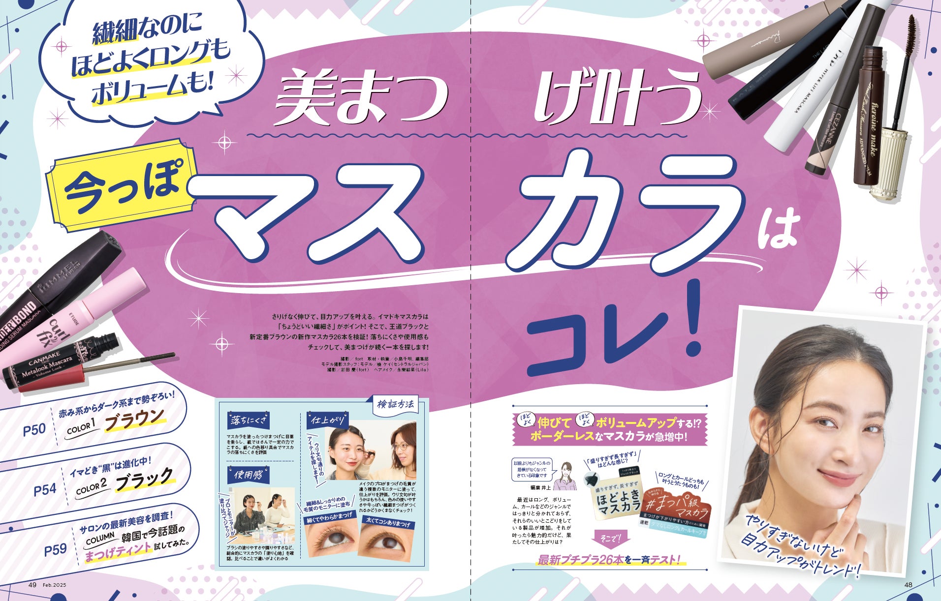 2月号は「2025年最新毛穴レスコスメ」を総力特集! 優秀アイテムや神テクで、毛穴に悩まされる日々とオサラバ! 諦めなければきっと未来は変わります。他にも、2024年下半期美容誌ベスコスの実力を検証。また、美まつげが叶う今っぽマスカラ検証や、理想のブラジャーの選び方など、今知りたい美容情報をたっぷりとご紹介します。