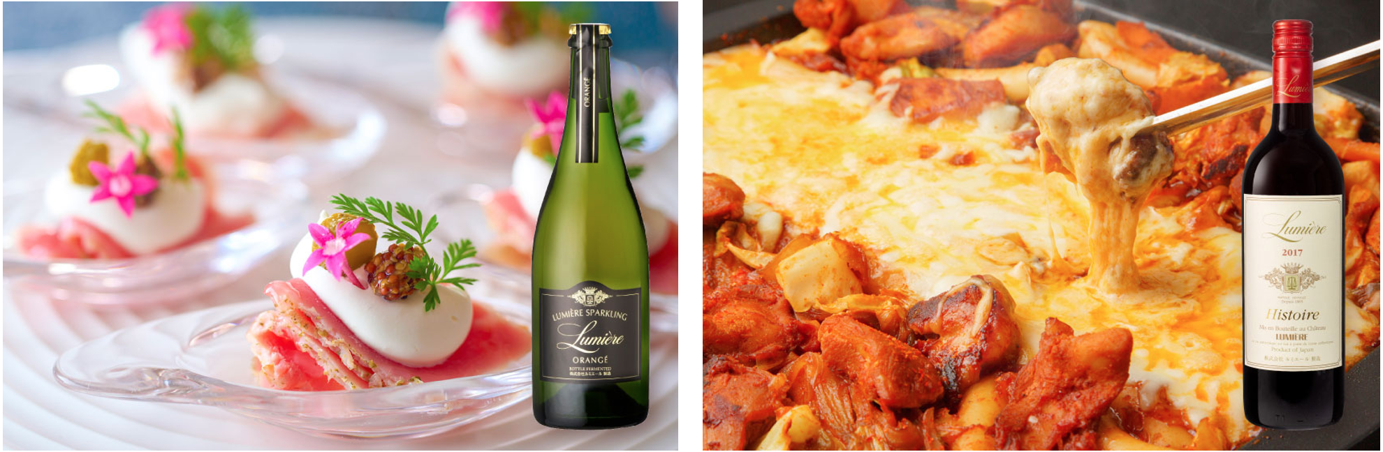 右:「信玄どりのチーズタッカルビ」はコチュジャンとチーズのコクに負けない、シルキーなテイストの赤ワインとご一緒に。