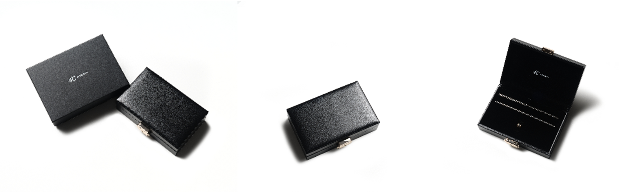 「2023 Christmas Collection」 は、モダンな印象の限定ケースに入れてお渡しします。ブラックのジュエリーボックスの中で輝くコンビカラーのセットジュエリーは、想いを届ける特別なシーンをさらに彩ります。