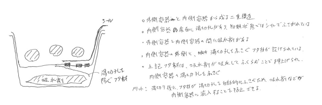 本事例では、発明者が発明構想段階で作成した手書きスケッチおよび発明メモを基に発明整理を行いました。