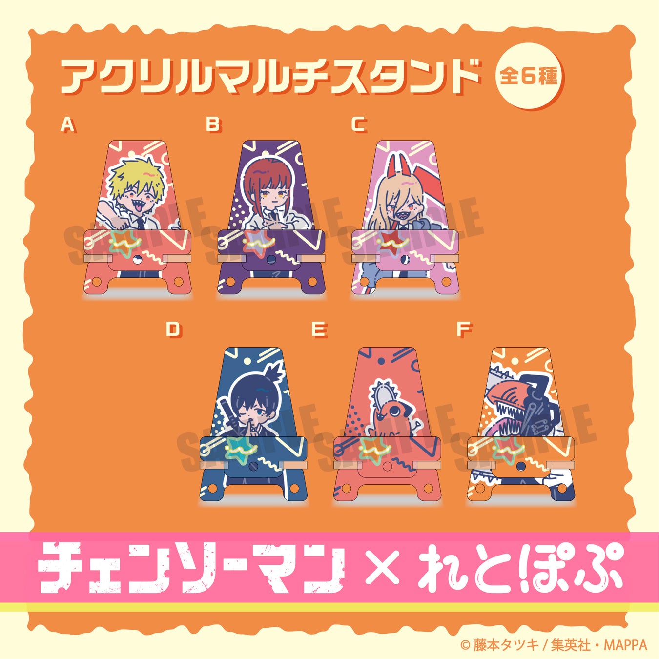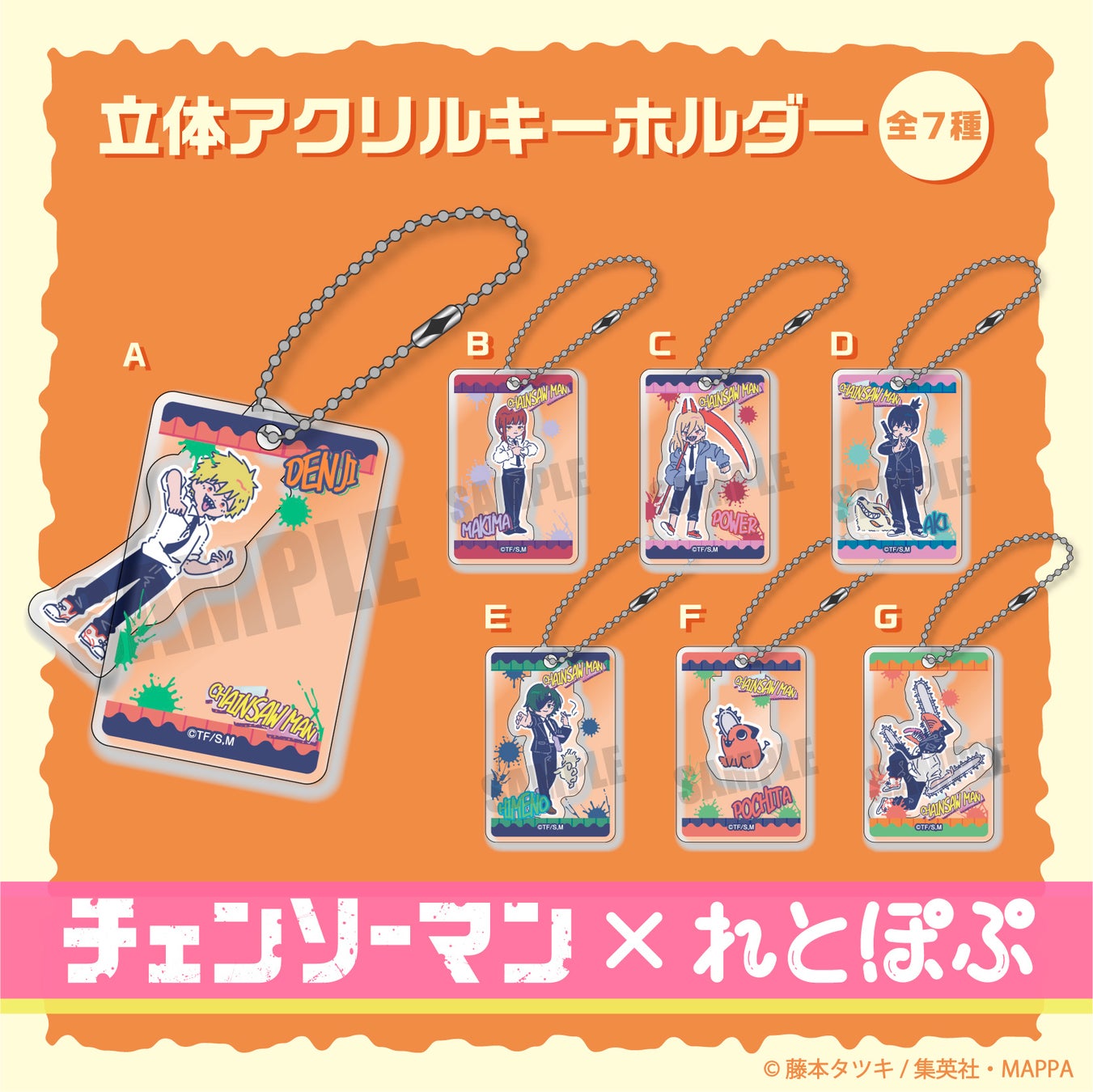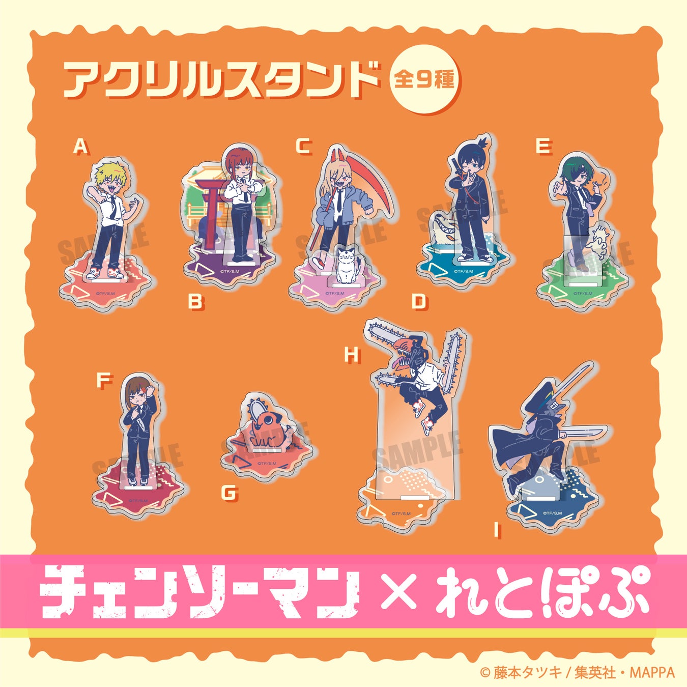 TVアニメ『チェンソーマン』れとぽぷシリーズは、チェンソーマン、デンジ、ポチタをはじめ、マキマ、パワー、早川アキ、サムライソードがラインナップ。