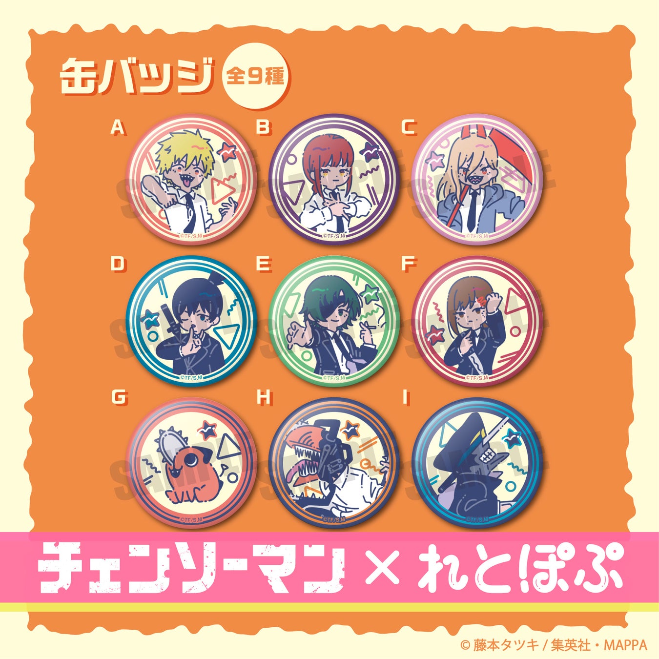 アニメ、ゲームあらゆるジャンルのキャラクター商品や販促グッズの企画、製造、販売をする株式会社プレイフルマインドカンパニー(代表取締役:大塚清隆、本社:東京都台東区)はTVアニメ『チェンソーマン』より、オリジナル描き起こしイラスト“れとぽぷシリーズ”で描き起こした[アクリルスタンド]や[缶バッジ]などのかわいいグッズを発売致します。