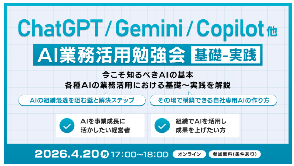 ChatGPTをビジネスのインフラとして活用し、業務効率化や事業成長につなげたい方は、ぜひご参加ください。