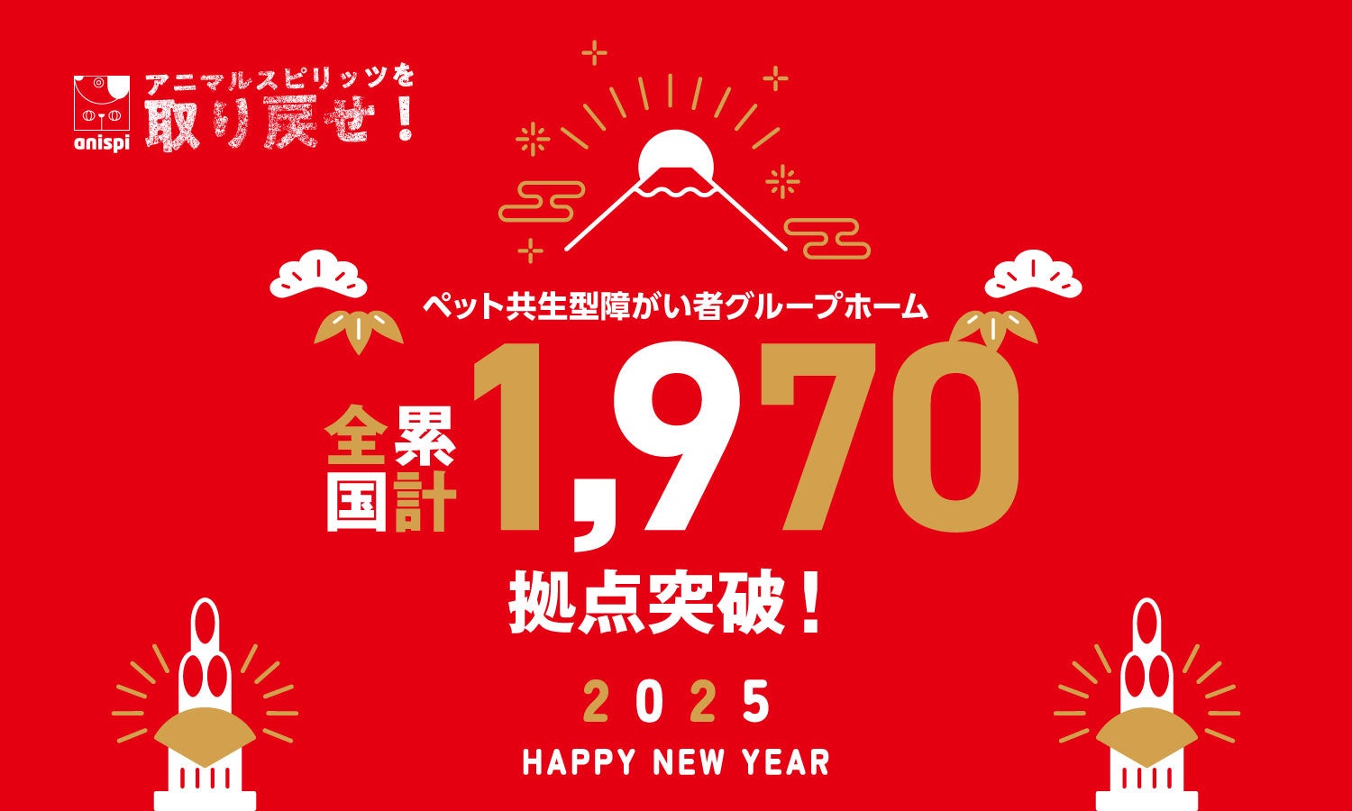 ペット共生型障がい者グループホーム「わおん」「にゃおん」を展開する株式会社アニスピHDは、2025年1月1日付で新たな拠点がオープン(全国累計1,970拠点)しましたのでお知らせします。また新たに訪問看護ステーション2拠点とファミリーナース1拠点も同時開設しました。