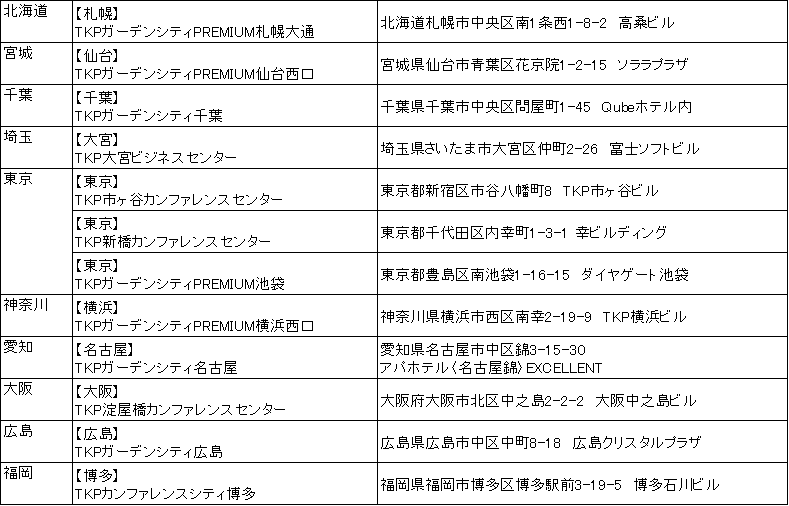 本社所在地 :東京都新宿区市谷八幡町8番地 TKP市ヶ谷ビル2F