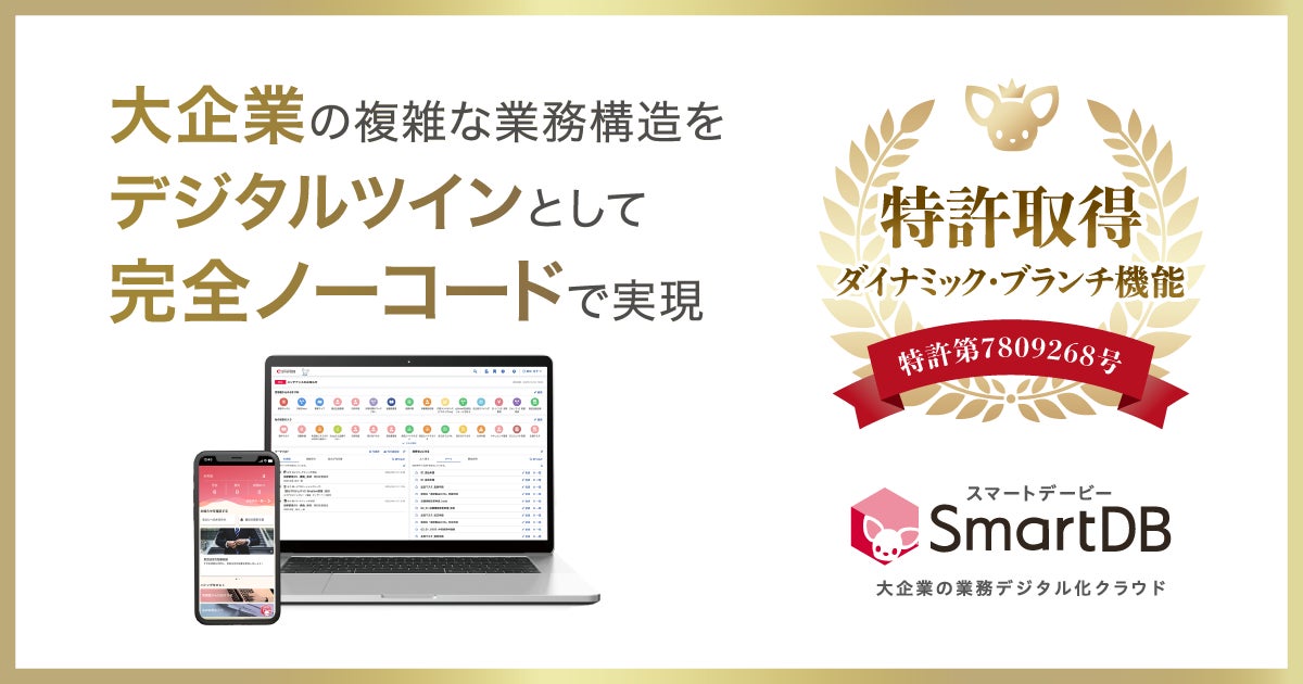 ドリーム・アーツ、SmartDB「ダイナミック・ブランチ機能」で特許を取得 -大企業の複雑な業務構造をデジタルツインとして完全ノーコードで実現-