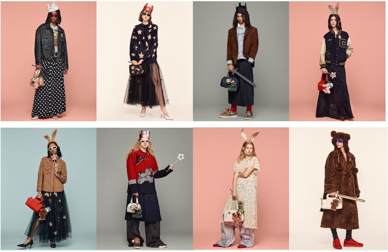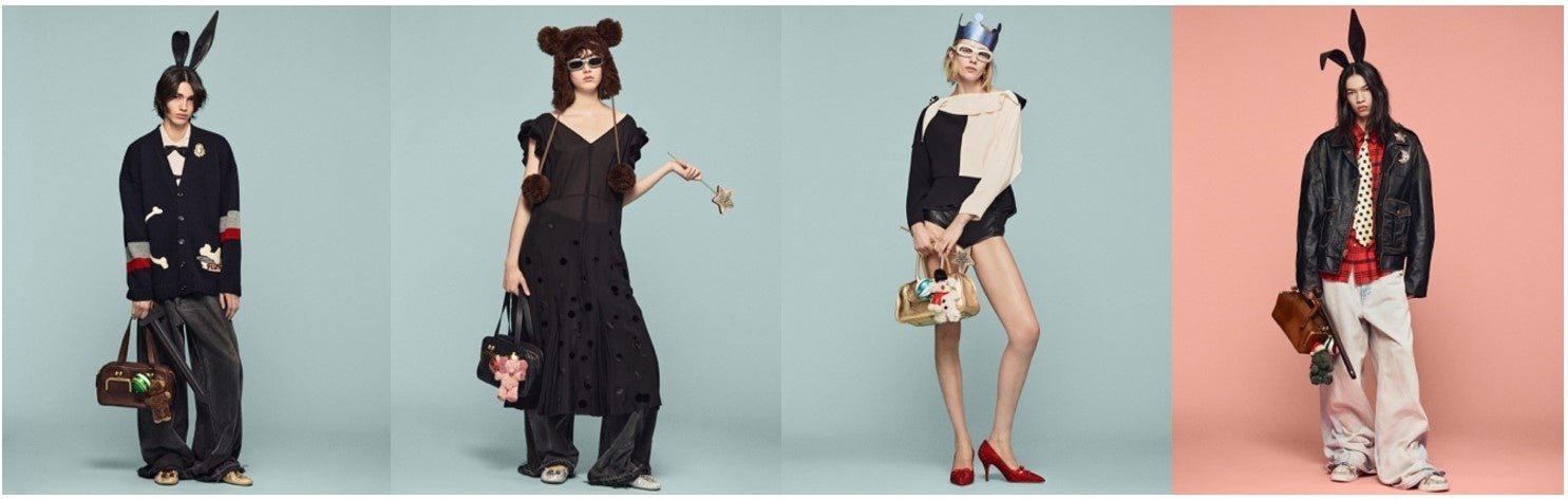 また、ファッションの楽しさと想像力をかき立てるアクセサリーとして、レザー製のクラウン、ワンド、ソード、シアリングやレザーのバニーイヤー、シーズナルアクセサリーを身に着けたぬいぐるみ型バッグチャーム5種も登場。遊び心あふれるディテールが、コレクションにさらなる魅力を添えています。