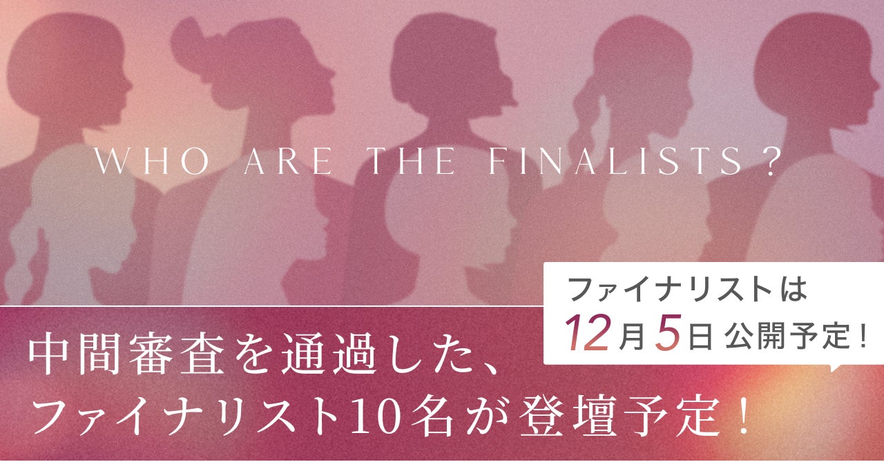 2024年8月にエントリーを開始し、総エントリー数160件から、一次選考通過者が11月27日(水) 開催の二次審査に臨みます。二次審査を経て決定したファイナリスト10名が、12月22日(日)の最終ピッチを行います。最終ピッチに臨む10名は12月5日(木)に発表いたします。