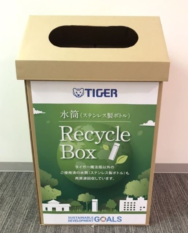 タイガー魔法瓶は、ステンレス製ボトルのサーキュラーエコノミー(循環型経済)のアクションとして、使用済みステンレス製ボトルを回収するボックスの設置を進めております。