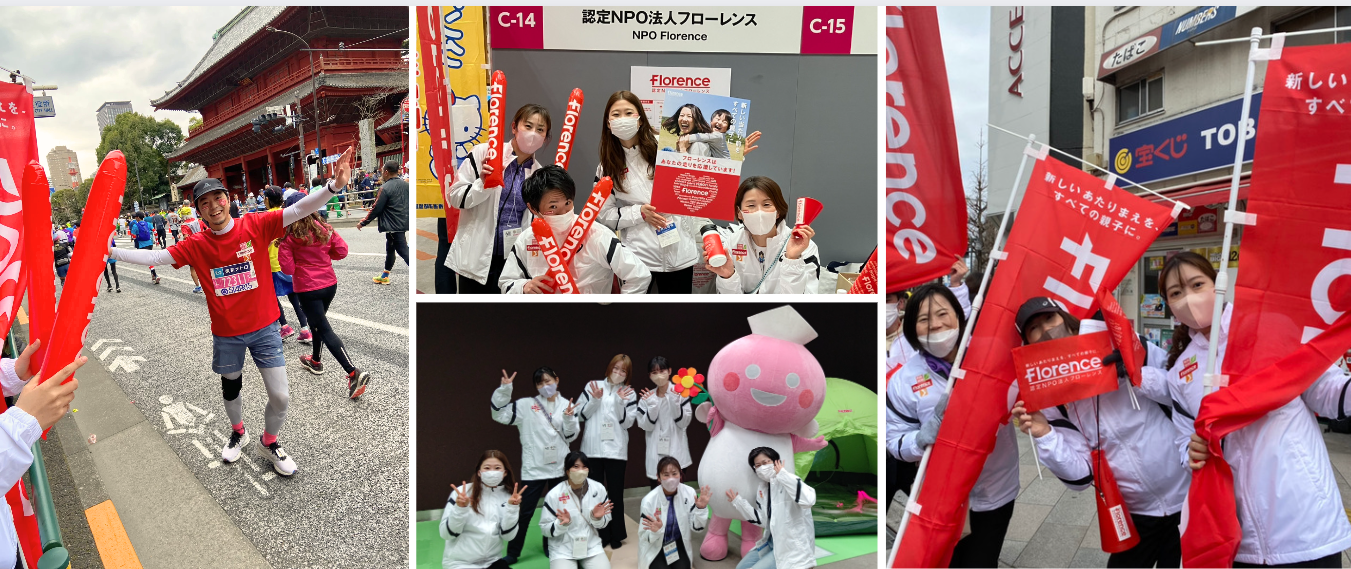 フローレンスは2019年より、東京マラソンチャリティに寄付先団体として参加しています。社会貢献団体へのチャリティを通じて参加する「チャリティランナー」の募集もあります。