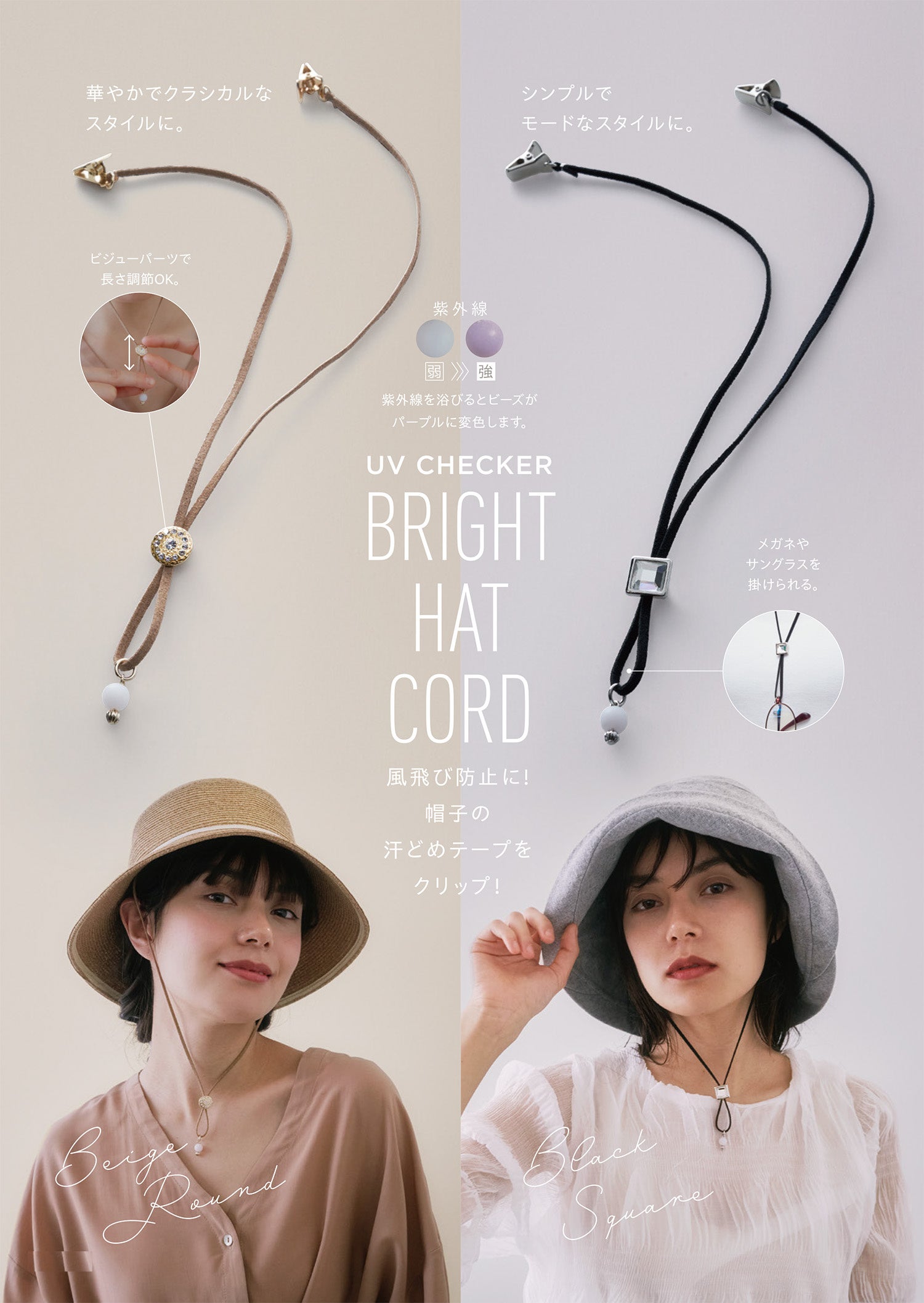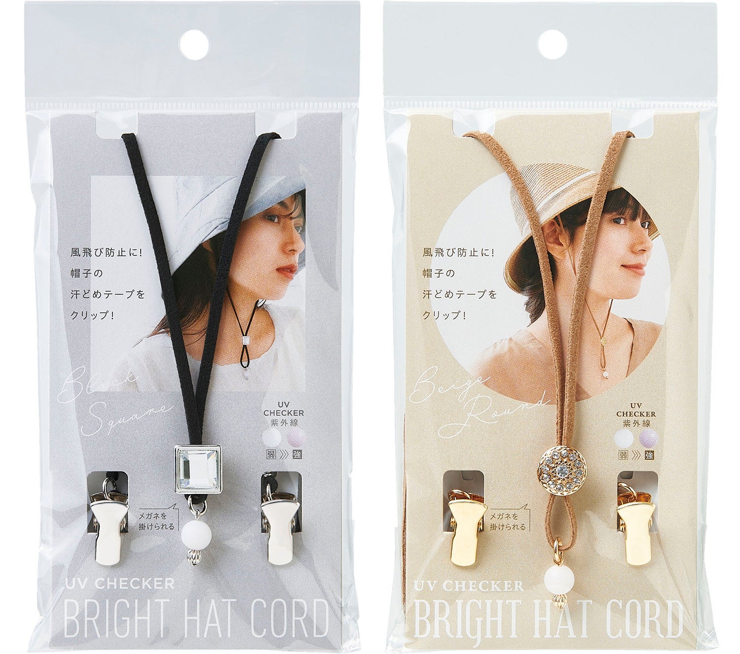 風飛び防止に帽子と襟元をクリップ!「UVチェッカー ブライトハットコード」