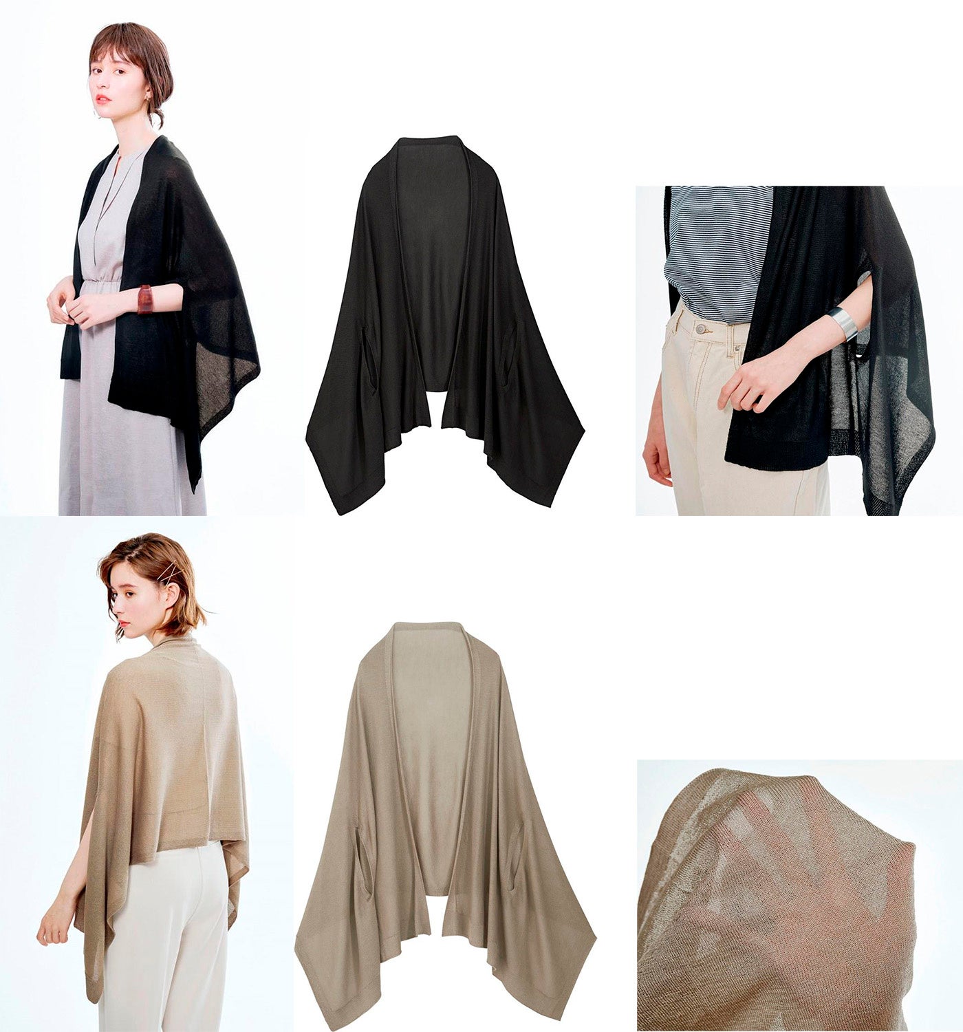 手が通せるスリットがポイント!ケープにしたりストールにしたりシーンに合わせて。