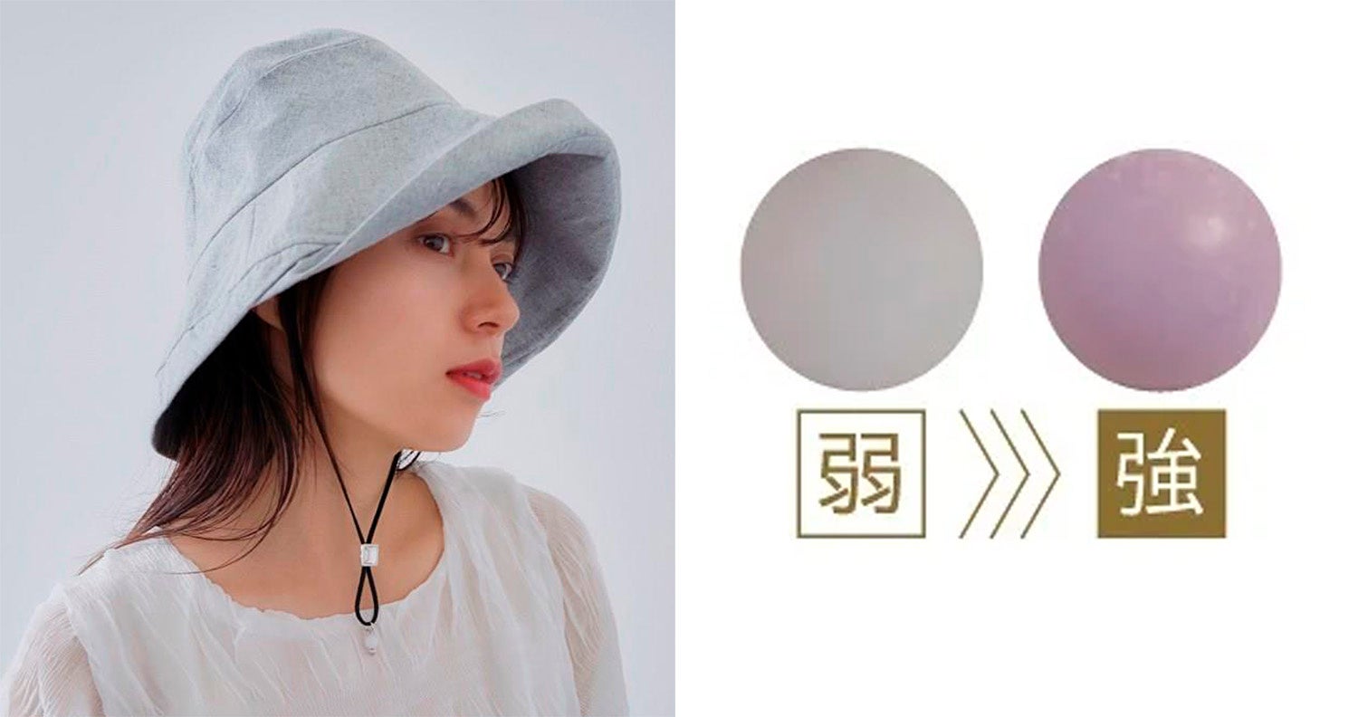紫外線を浴びるとビーズがパープルに変色。しっかり紫外線対策をすることが可能です。