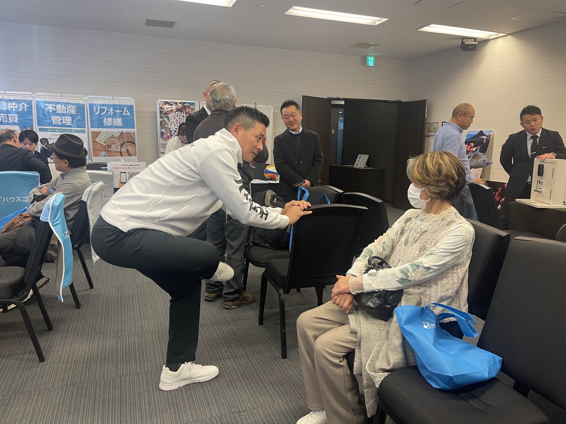 「経営の健康・建物の健康・家主様の健康」をテーマとした家主様会において、現役ビーチバレーボール選手でもある当社アスリート社員より健康に関する相談会を実施しました。