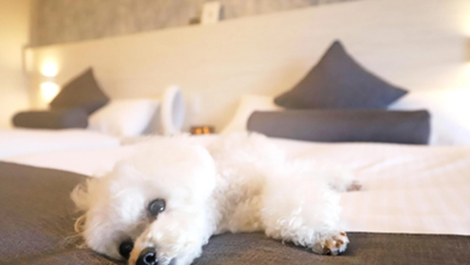 全室愛犬同伴可能で、ベッドでの添い寝もOK。人もわんちゃんもゆったり過ごせる客室にはペット用アメニティも充実しており、愛犬との初めての旅行でも安心してお過ごしいただけます。