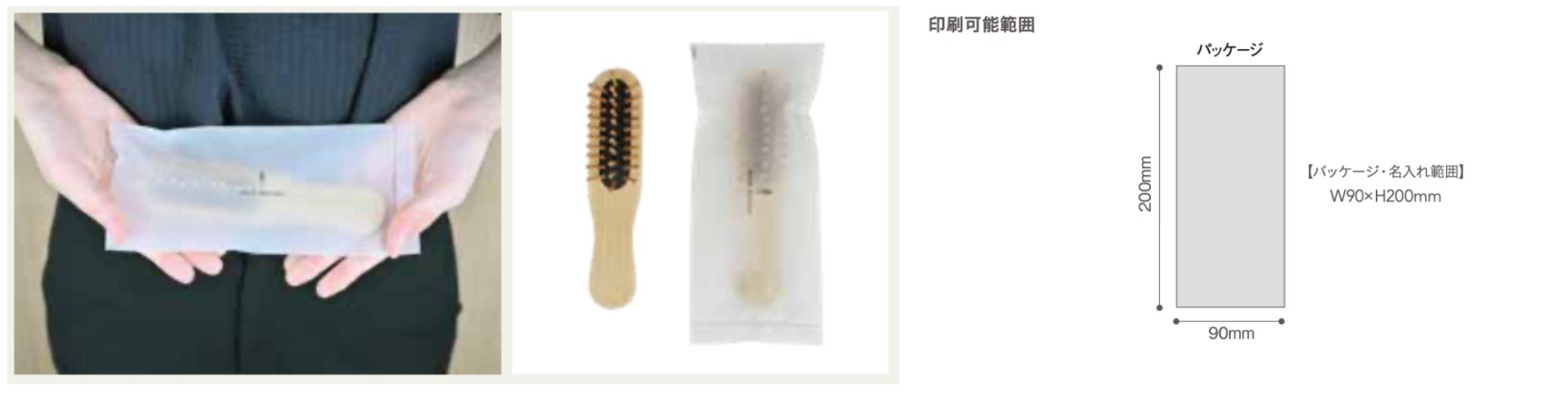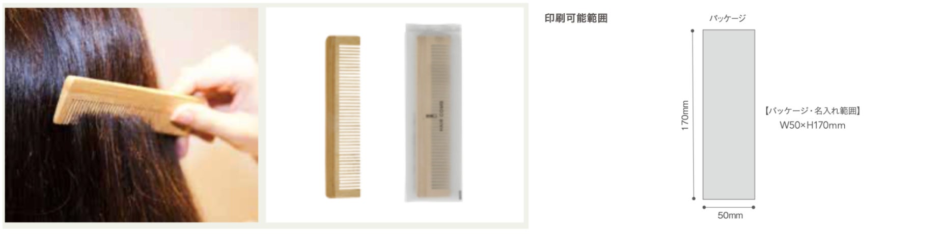 天然の竹を使用した、130mmのヘアコーム。厚さは6mmとかさばりにくく、軽い竹素材を採用していることから、ストレスなく髪をとかせます。竹素材の温かい雰囲気がおしゃれで、宿泊後にお客様が持ち帰り、繰り返しお使いいただけます。5,000個〜パッケージのオリジナル対応も可能です。