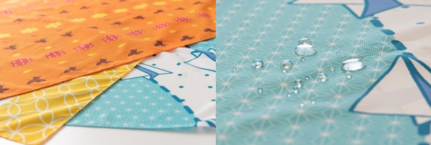 一枚布だから用途に合わせて様々な形に変化するのがふろしきです。本商品は、撥水という大きな特徴を備え、様々な使い方が提案できる「ふろしき」として発売します。
