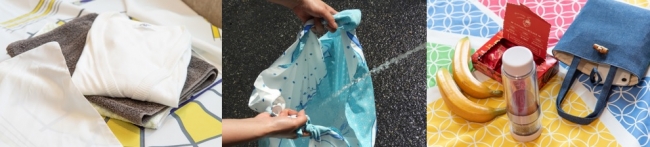 第一の特徴は「撥水」です。特殊な撥水加工で、強力な撥水性能が備わっています。それにより、買い物で水気のあるものを入れたり、濡れた衣類の持ち運びなどにも便利。更にレジャーシートとしての利用や、水も運べるので災害時にも役立ちます。