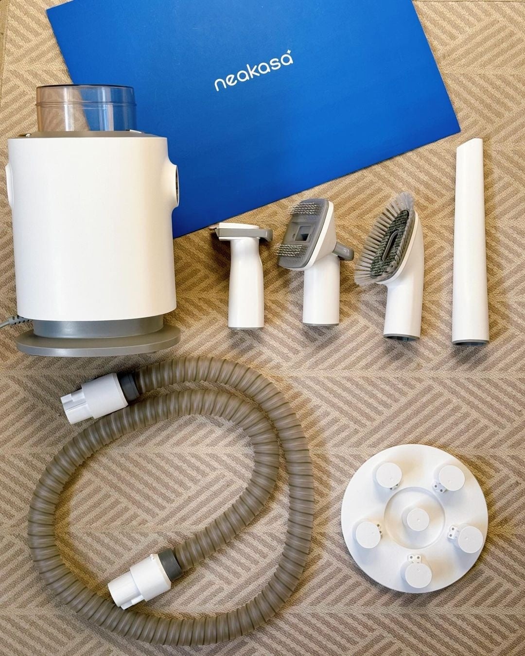 Neakasa P0liteペット用ブラシセッは毛をブラッシングする際に同時に吸引することができる特徴があります。更に、4つの異なるブラシヘッドが付属しており、ブラッシング、薄毛化、清掃の機能が統合されています。ブラッシングと同時に毛を吸引することにより、ペットの毛がにおける掃除の手間を軽減します。