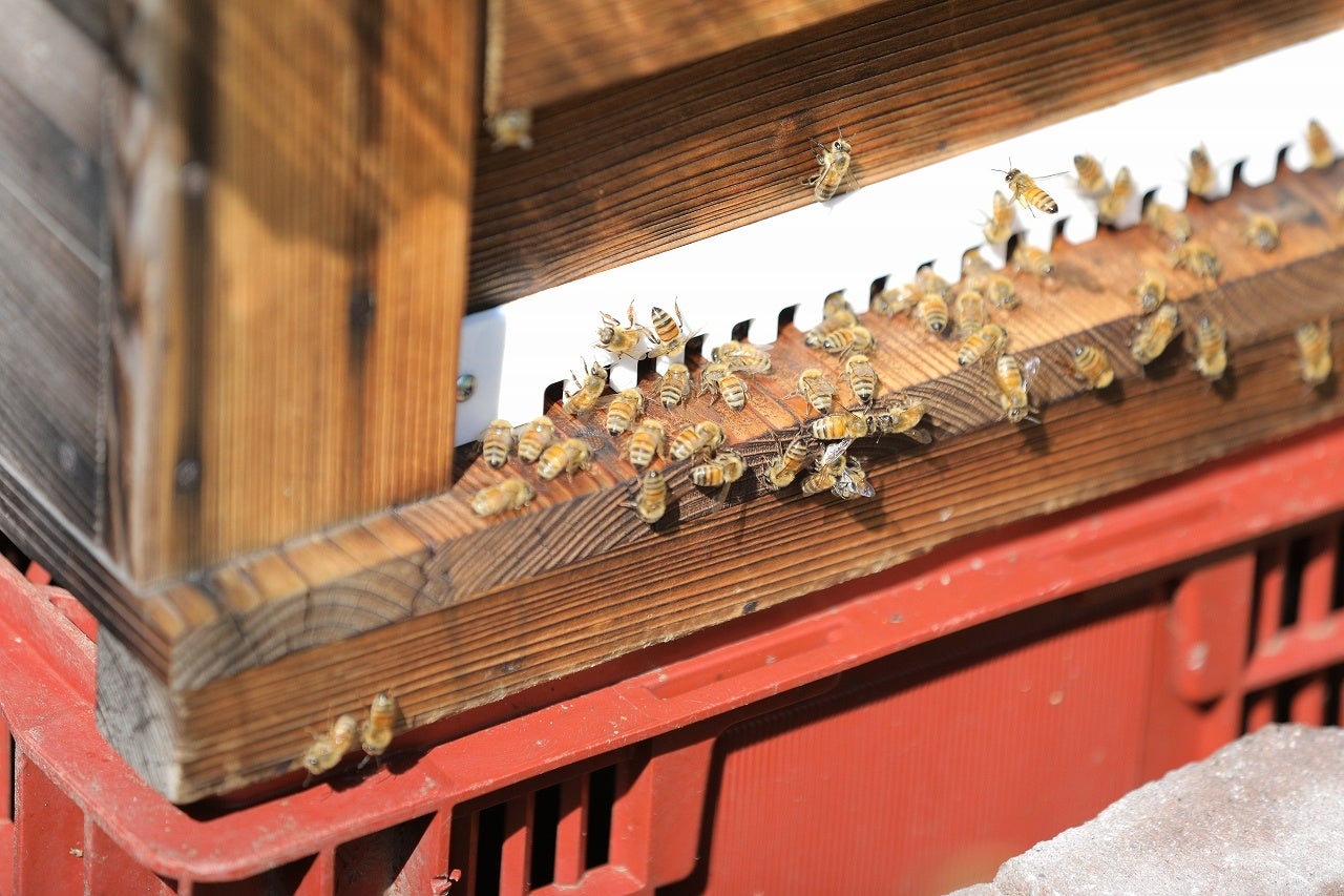 みつばちの巣箱観察(2022年4月9日横浜市アメリカ山公園)
