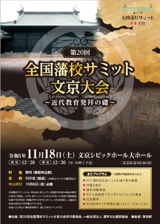 主催 :第20回全国藩校サミット文京大会実行委員会、一般社団法人 漢字文化振興協会