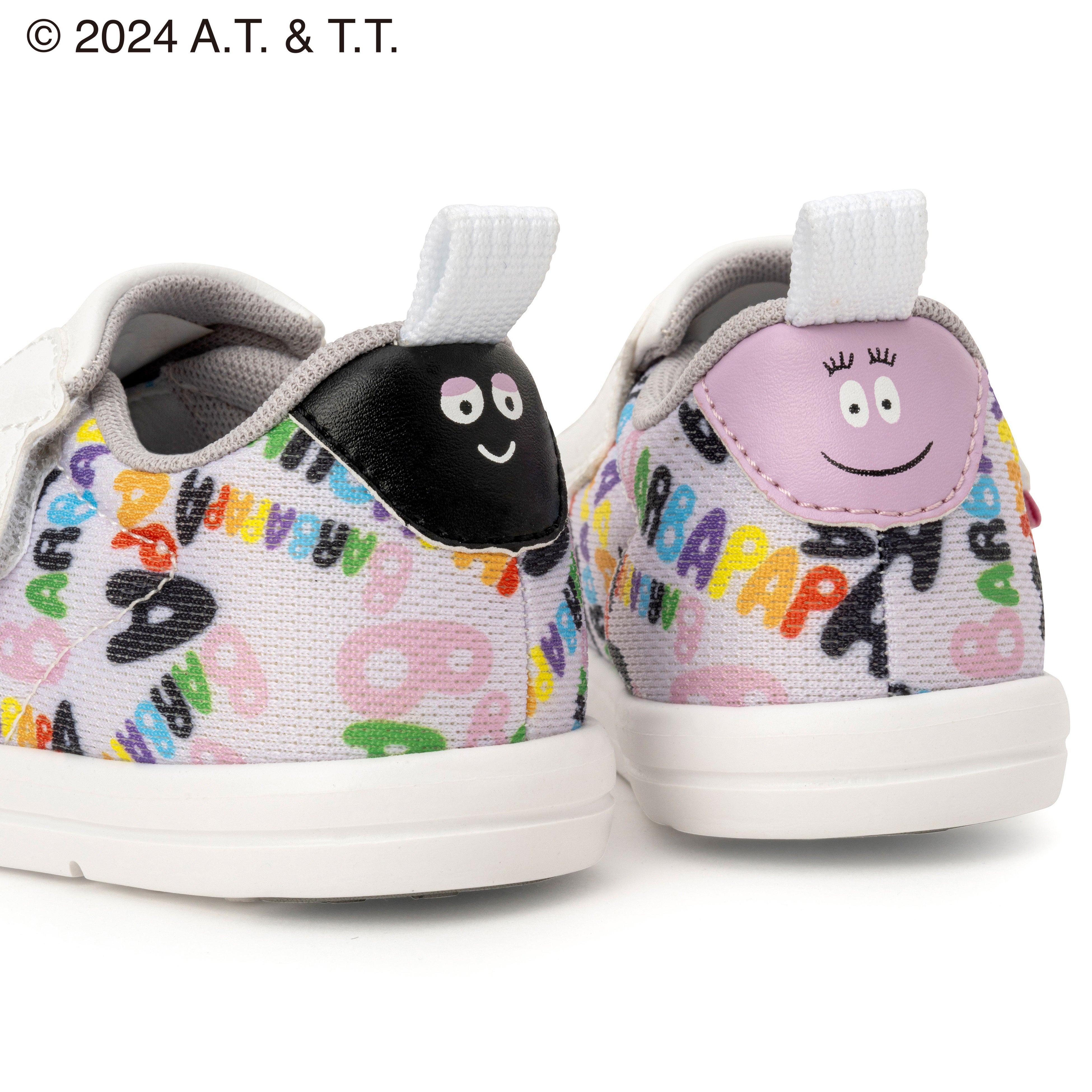 優しくて頼りになるお父さんと、子ども思いのお母さん、7人の個性的な子どもたちと1匹の犬からなるバーバパパファミリー。フランスをはじめ、世界中で愛される絵本のキャラクターです。今回は個性豊かでカラフルなバーバパパファミリーをシューズにデザイン。かかと部分に大きくプリントされた「バーバパパ」のロゴグラフィックや、たまごから生まれた子どもたちを表現したドット柄など、親子お揃いの靴を履いてお出かけしたくなるようなカラフルでポップなコレクションになっています。