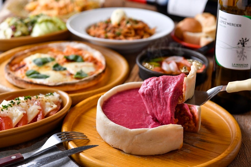 看板メニューの「オムライス」の他、器の外まで溢れんばかりのチーズと溶岩のようなミートソースに視線も釘付けになってしまう話題の「溶岩チーズハンバーグミートパスタ」や、カットした瞬間の溢れ出るチーズが圧巻の「シカゴピザ」など、思わず動画や写真を撮りたくなるようなワクワクする演出にこだわった料理をご提供いたします。