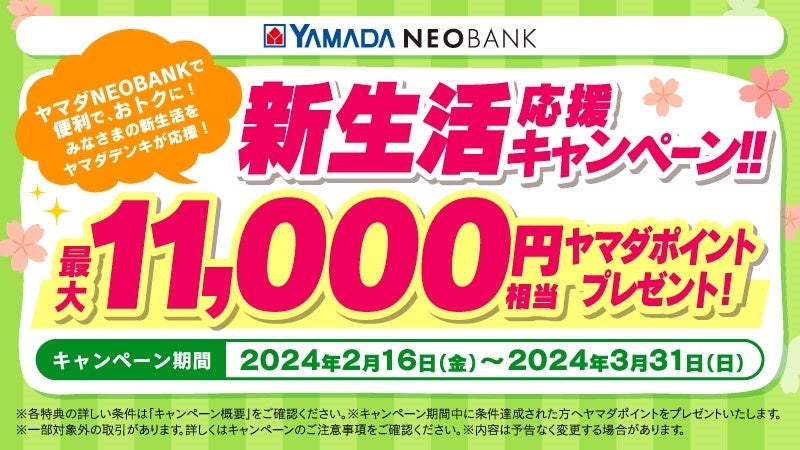 ヤマダNEOBANK、「新生活応援キャンペーン」開催のお知らせ~最大11,000円相当ヤマダポイントプレゼント!~