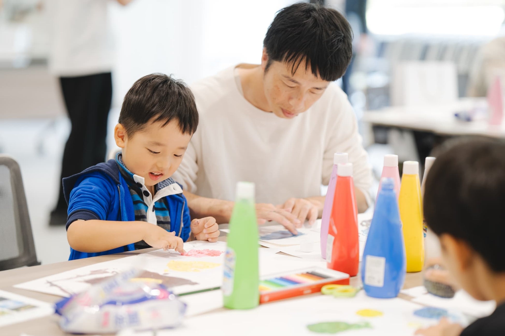 アートに「正解」や「間違い」はありません。指絵の具やキットパスをつかって“オリジナルアート“に挑戦していただけます。自由な心で、思うがままにアートを描き、最後は額装して完成!完成した作品は持ち帰り可能で、アートのある暮らしを実現できます。子供から大人までどなたでもご参加いただけます。