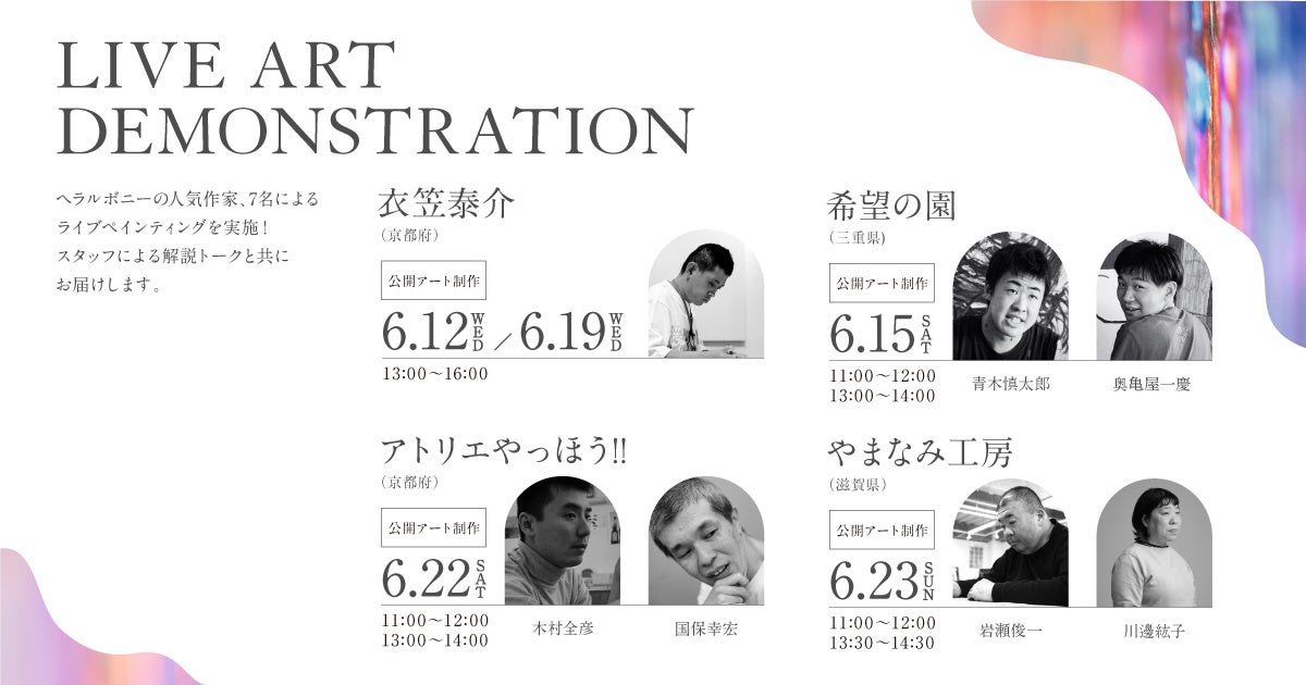 ヘラルボニーの契約作家7名によるライブペインティングと、彼らの制作の背景を熟知する方々とのトークイベントを行います。