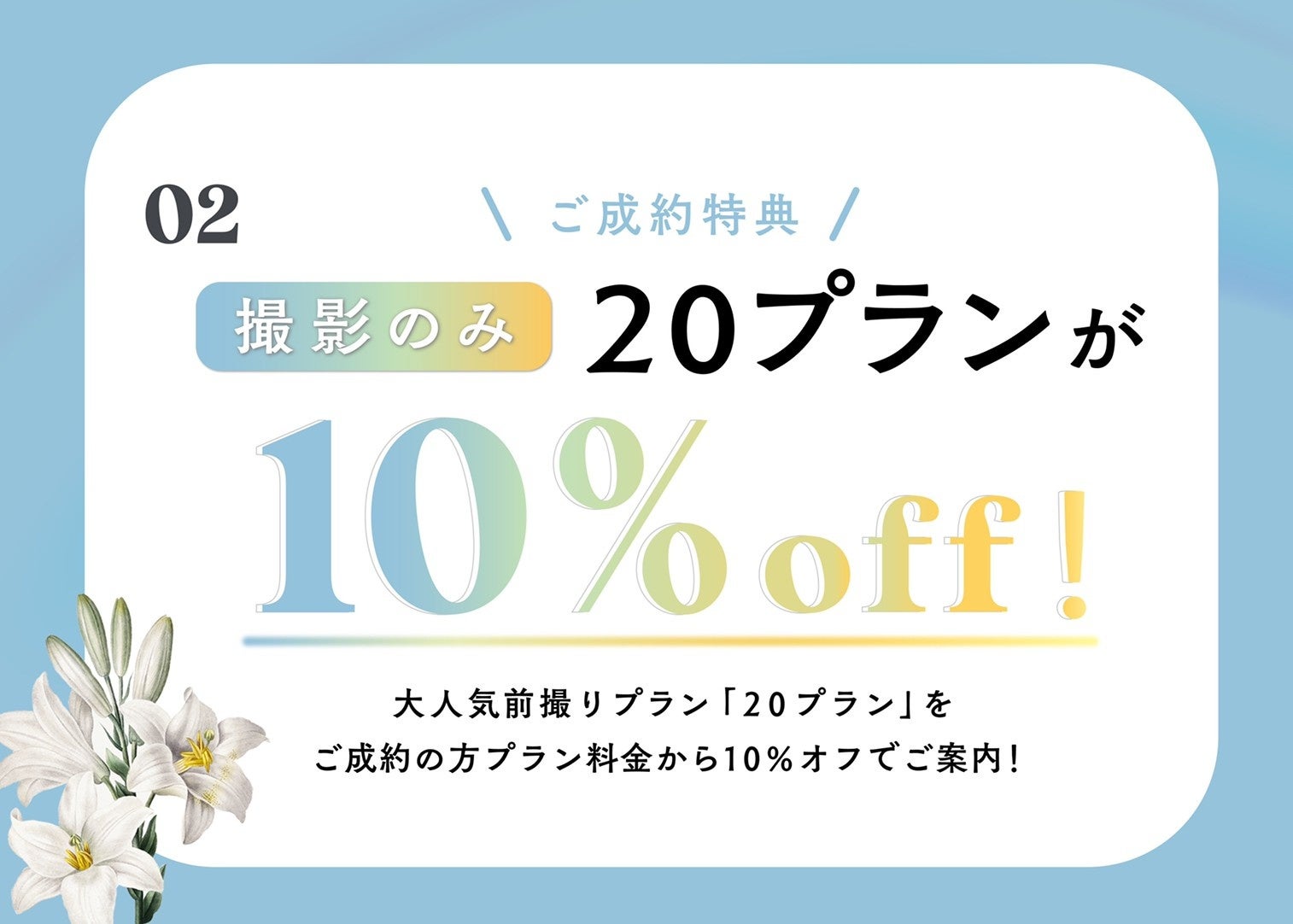 大人気の前撮りプラン「20プラン」を10%オフでご案内!