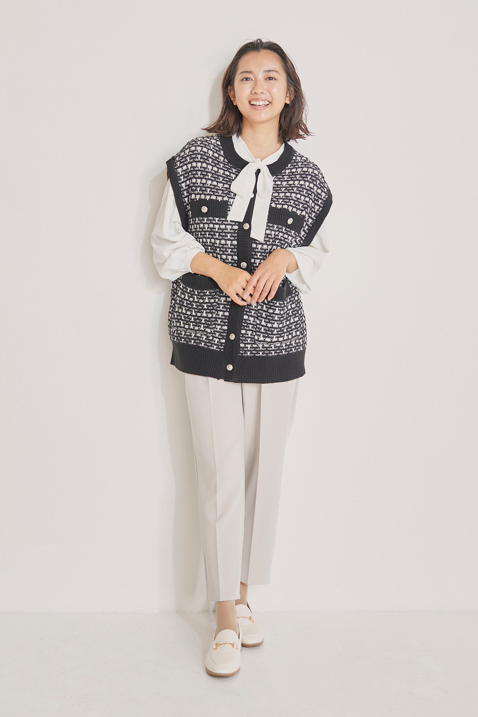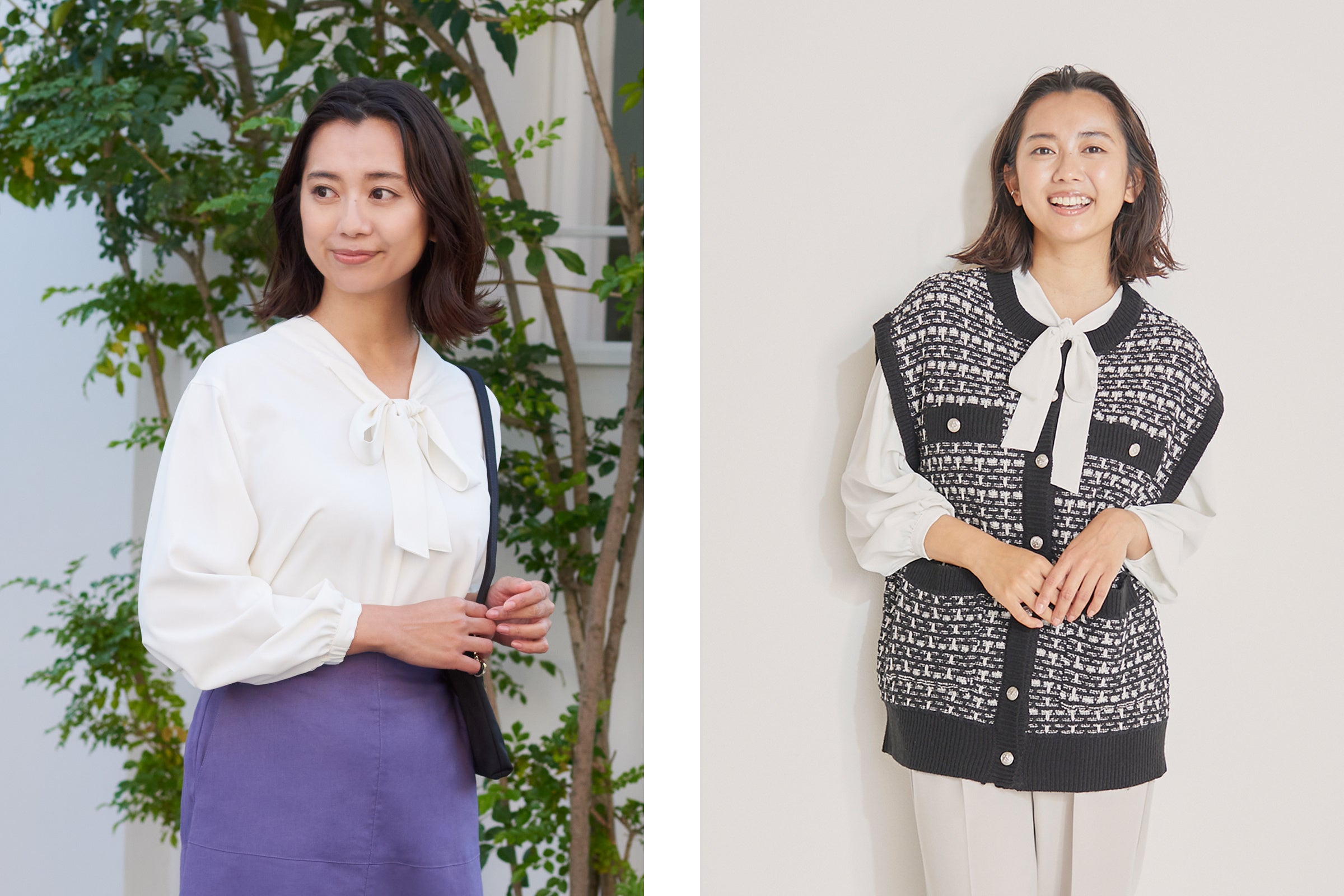 今年らしい着こなしがかなうボウタイデザインのブラウス。タイの結び方で印象が変えられ、オンオフ問わず着まわしできます。