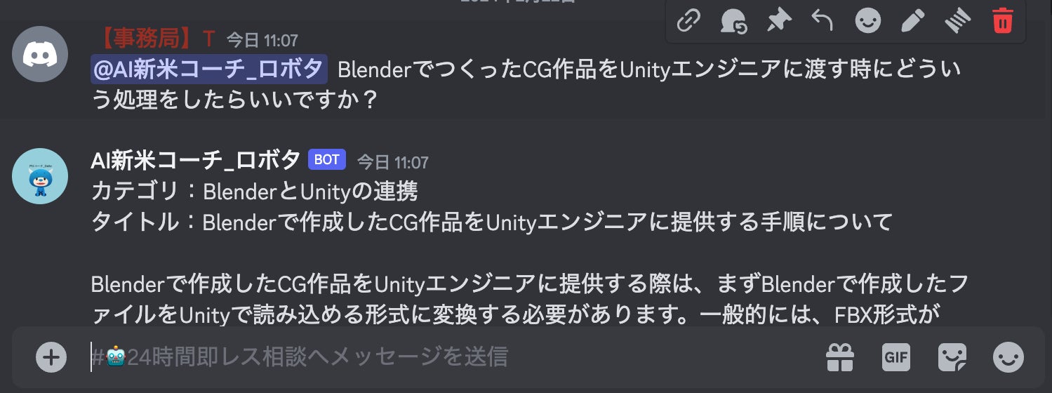 バーチャル空間内のAIアバターに加え、学生が利用するDiscord内でもキャンパスライフを24時間体制でサポートすることができるAIコーチbotを導入しました。