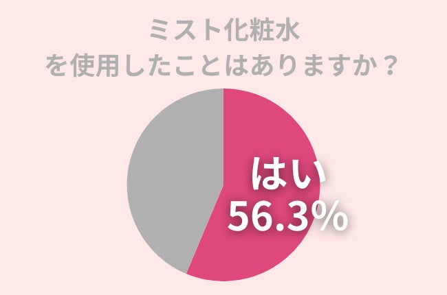 アンケート調査の結果、56.3%の女性がミスト化粧水を使用したことがあるとわかりました。