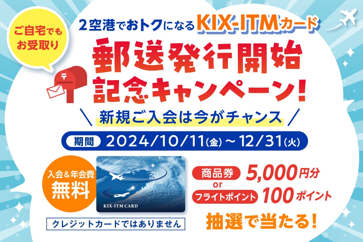関西エアポート株式会社は、「KIX-ITMカード 郵送発行開始 記念キャンペーン」の実施をお知らせします。