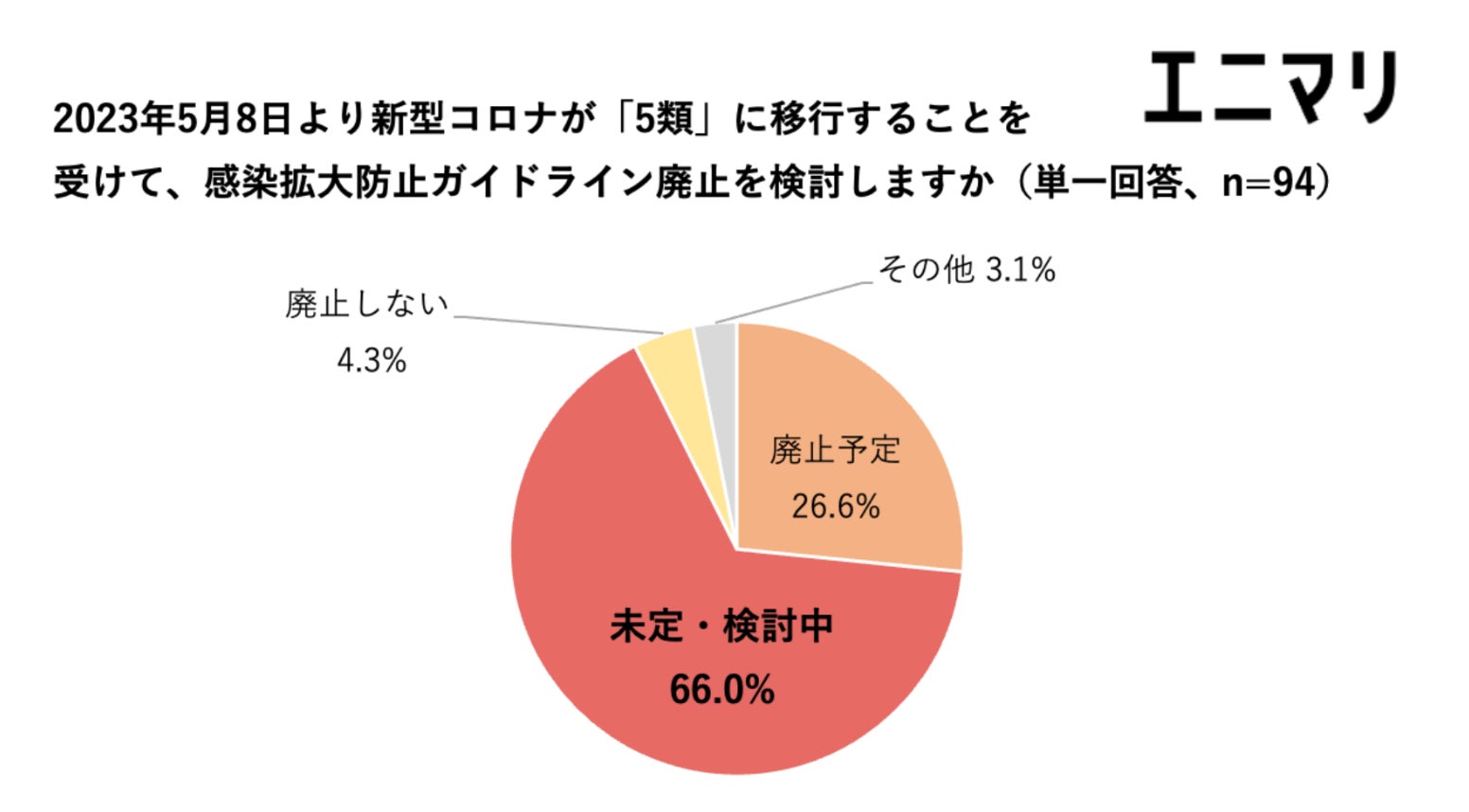 〜5月8日からの新型コロナ「5類」移行後は、7割が感染拡大防止ガイドライン廃止を “未定” と回答〜