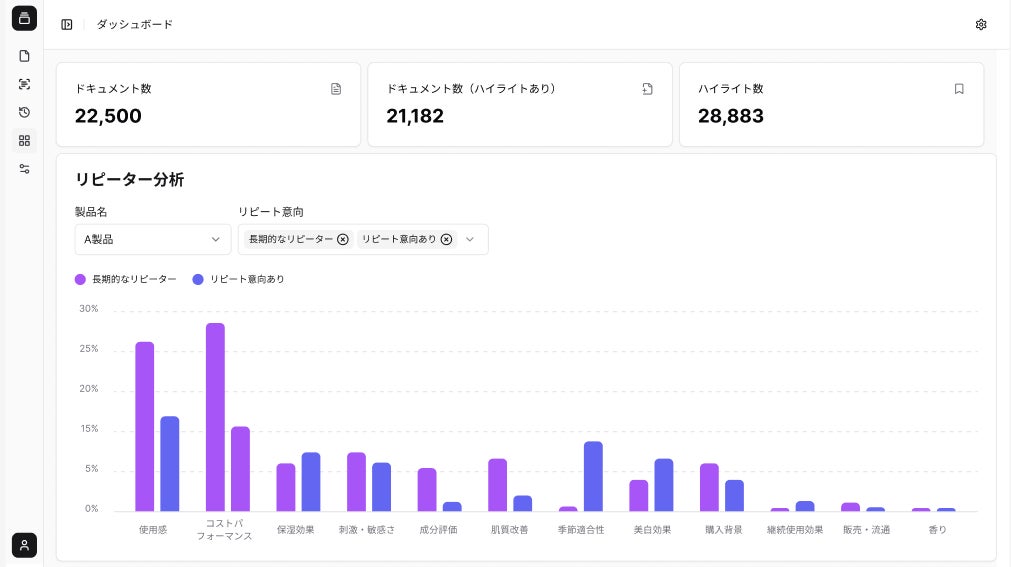 また、定性情報を活用したデータ分析の分野では生成AIの活用が進んでおらず、従来のVoC(Voice of Customer)分析ツールでは、単なるキーワード抽出にとどまり、ビジネスに活かせる示唆を得ることが困難でした。
