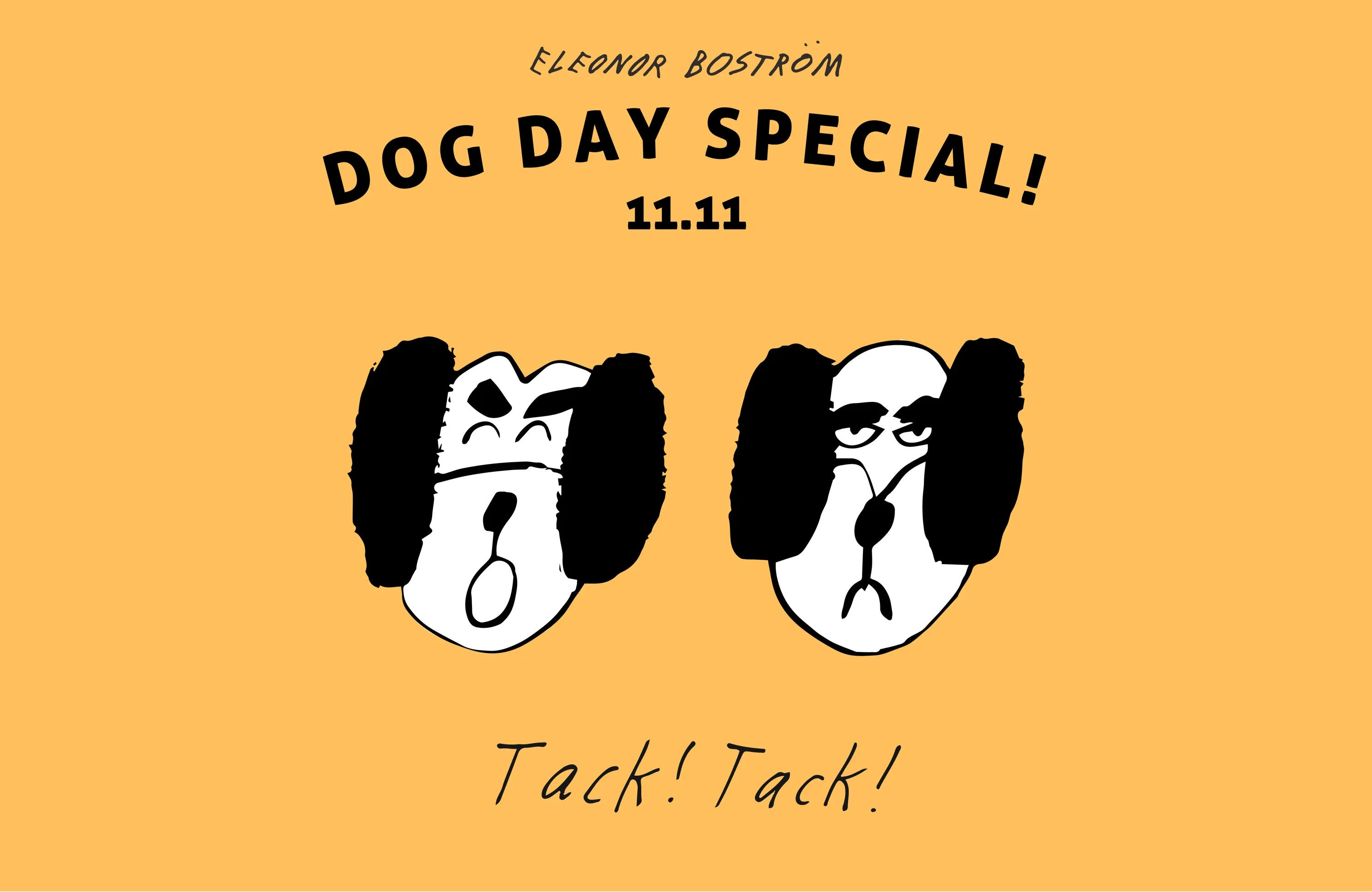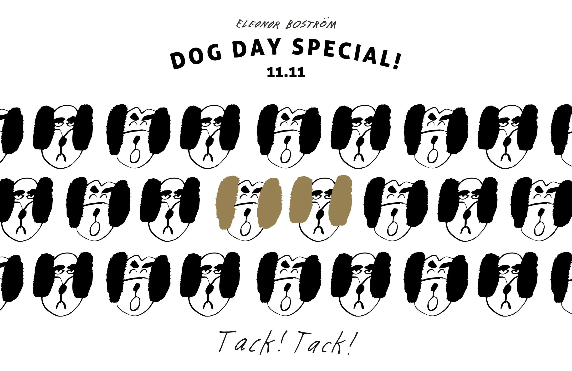 ワンワンワンワン!1(ワン)が4つ揃った11月11日は犬の日。ならば、エレオノールからTack!(スウェーデン語で感謝の意味)をたくさん込めたスペシャルな犬の日を開催!ほら、イヌくんの耳が、なんだか1に見えてきたでしょ?そんなスペシャルな日のために、定番のワンコくんや初めましてのワンコちゃんが大集合してくれました!