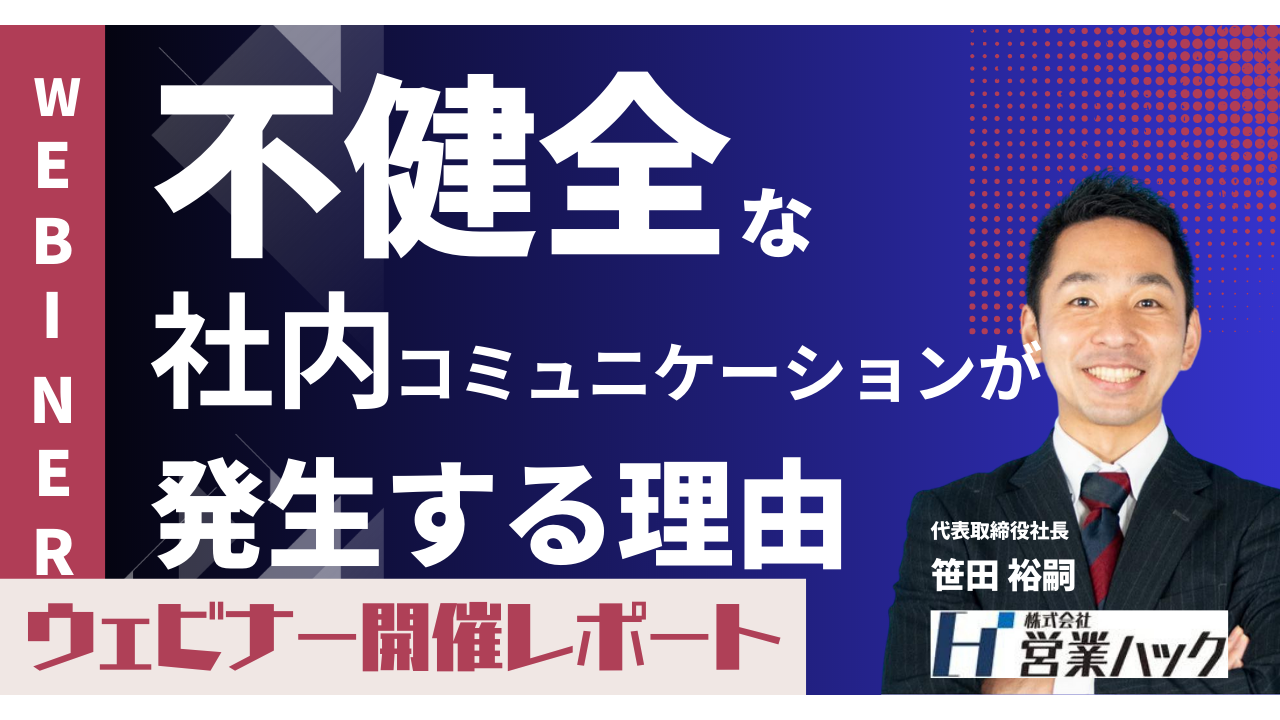 このような状況にあるお悩みを営業代行事業で営業支援をさせていただく中でよく聞くようになりました。そこでそうなってしまいがちな不健全な組織の特徴を今回は30分で解説させていただくこととなりました!