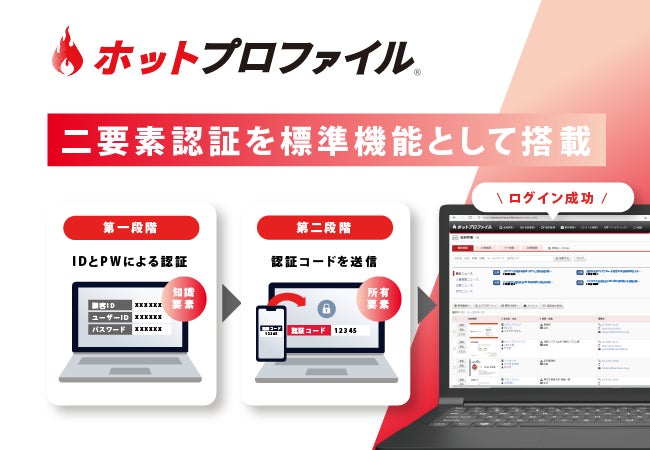 株式会社ハンモック(本社:東京都新宿区、代表取締役社長:若山 大典、以下 ハンモック)は、クラウド型名刺管理・営業支援ツール「ホットプロファイル」が「二要素認証」に対応し、2023年12月下旬より全ユーザーに無料で提供開始することを発表いたします。