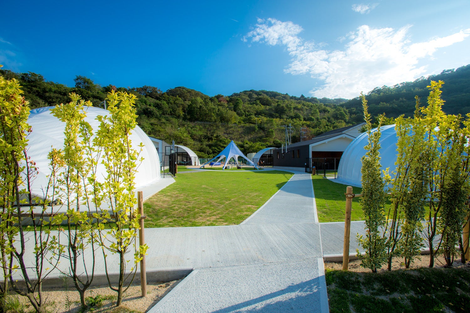 大阪市内から1時間のこの絶景スポットに位置する「SKY DOME阪南」は、全12棟と多数、多種の大型ドームテントを配置した大阪府初のグランピング施設として22年3月にオープンしました。