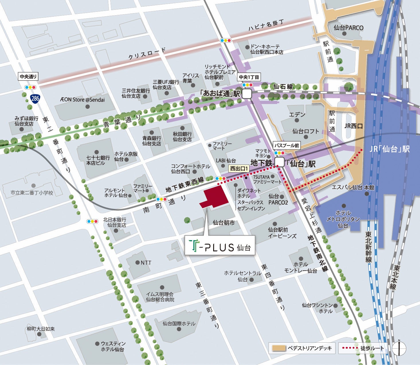 JR「仙台」駅徒歩4分、地下鉄東西線・南北線「仙台」駅徒歩1分 |