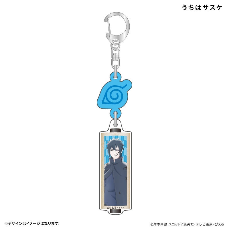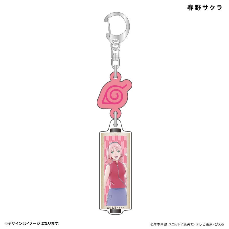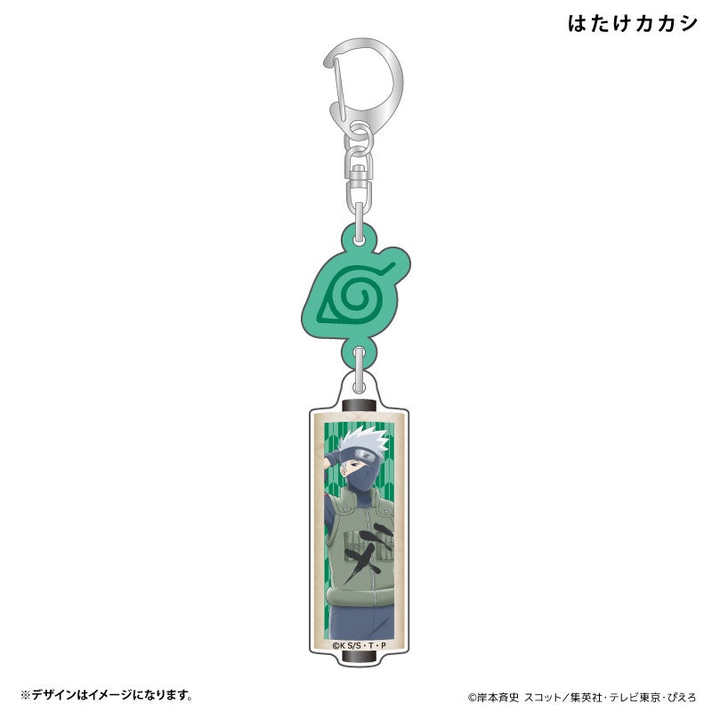 アニメ20周年をお祝いするうずまきナルト、うちはサスケ、春野サクラ、はたけカカシがアクリルキーホルダーになって登場!木ノ葉隠れの里マークにつり下がった、巻物型のデザインになっています。