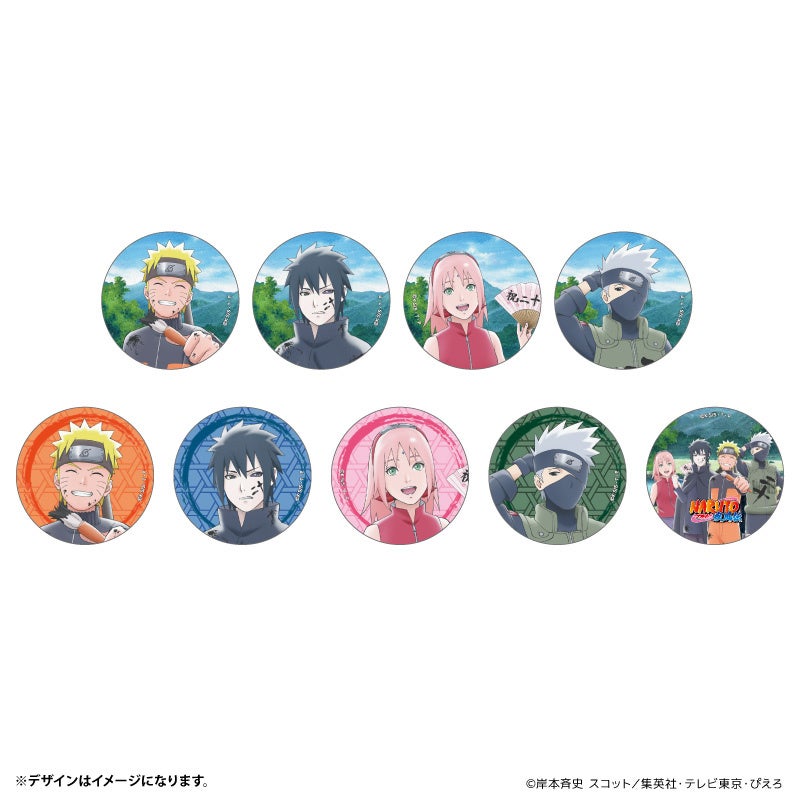 アニメ20周年をお祝いするキャラクターたちが、第3演習場をバックにしたデザインや、和風柄の缶バッジになって登場!1BOXで全種揃います。