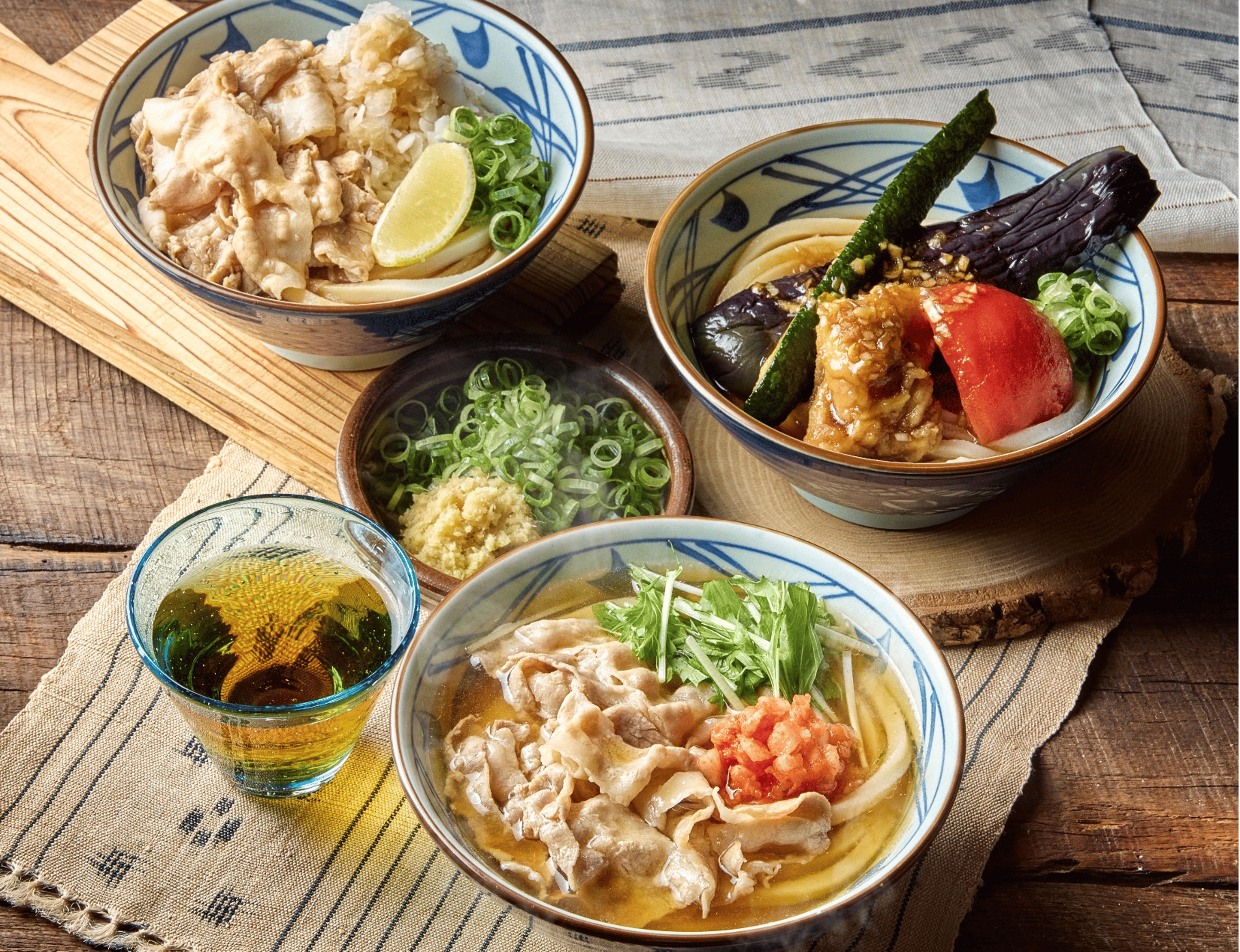 ※『鬼おろし豚しゃぶうどん』『鬼おろし肉ぶっかけうどん』は、夏季限定で販売している商品と仕立てが異なります。