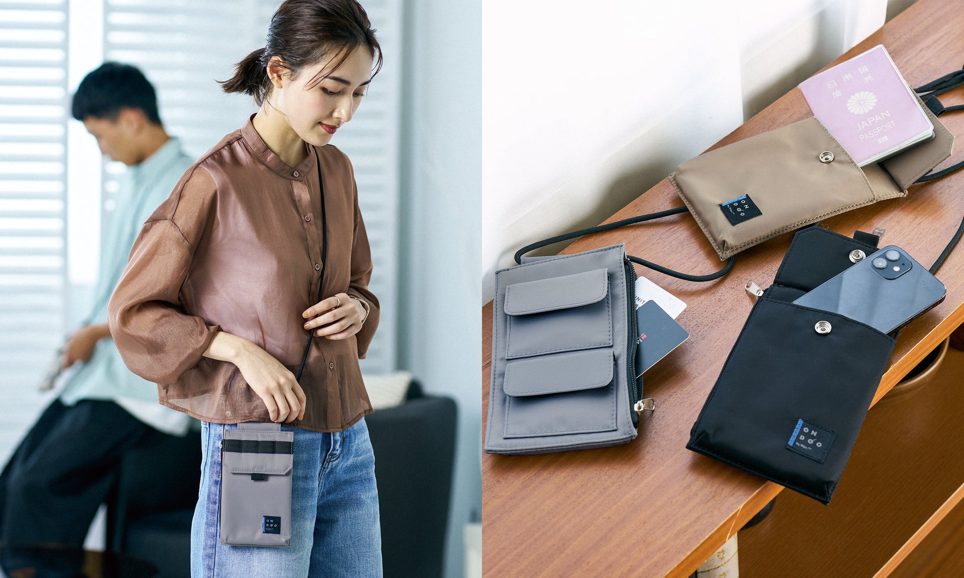 ラインナップはパッキングトラベルポーチ、シューズバッグ、吊り下げポーチ、マルチショルダー、立体型アイマスク、ネックピロー、スーツケースベルトなど、快適な旅に欠かすことのできないアイテムばかり。一部アイテムにははっ水加工が施された生地を使用しており、傘メーカーならではの強みを生かした機能性・実用性にもこだわっています。デザインはどのアイテムもシンプルにロゴを配置し、ブラック、グレー、ベージュなどユニセックスでお使いいただけるカラー展開にまとめています。